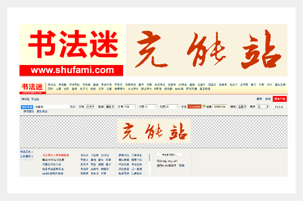 打开网站书法迷,输入“充能站”三个字,选择合适的字体下载。