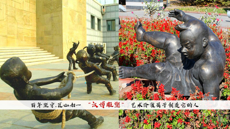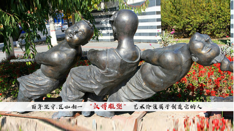 童趣小孩拔河主题人物雕塑展览:团结拼搏展风采