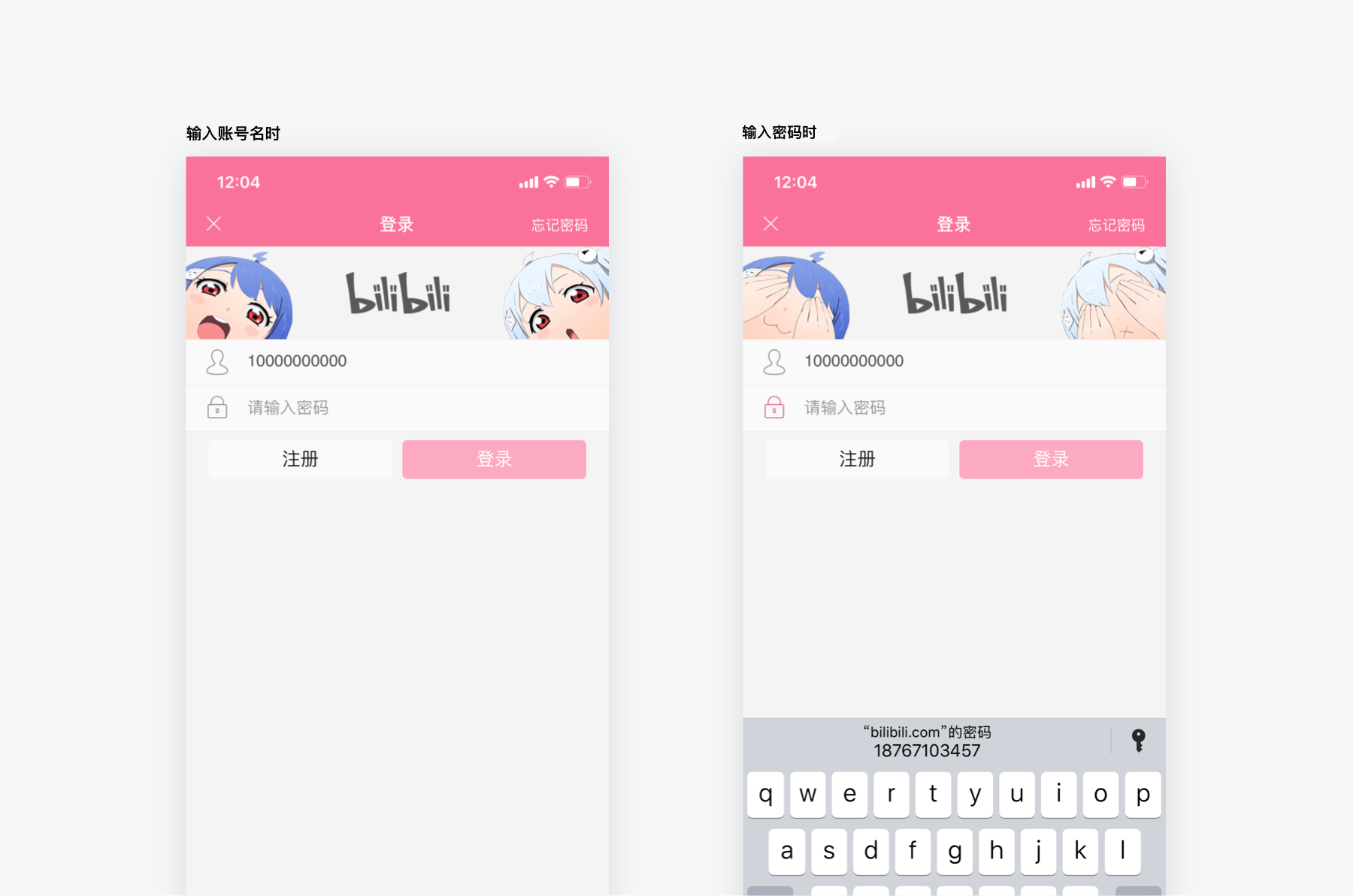 常人都会去做的交互,我们是不是可以省略掉呢?例如一些键盘的弹窗,我们可以减少用户点击输入框的交互;支付密码输入后直接确认,减少点击确定按钮的交互;小程序授权时直接授权手机号,减少了输入手机号,发送验证码并填写的操作。B站登录页面,在输入密码时,2233娘捂住了自己的眼睛,暗示着“你可以偷偷输密码了”,在契合用户对密码这一私密字段的认知中,做出的一点延伸,也能产生趣味性。