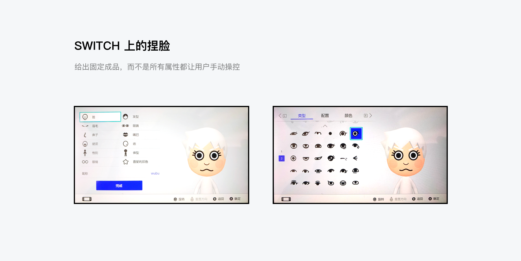 在一些美颜或者捏脸的软件中,用户的心理模型就是要一张预期中的理想效果图。进入设置页面后,自然不希望系统给到的是一些眼睛、鼻子的配置参数,而是实实在在的契合心理模型的大眼睛,高鼻梁的视觉效果,他们只需要点击要的类型,系统就能自动给出对应的参数。在这样的过程中,也许用户根本不需要知道这样的五官是这么处理出来的,他们要的,只是结果。