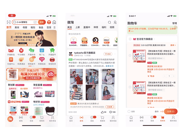 交互操作的一致性分为两个方面:一是产品内部的交互方式应保持一致,比如淘宝中点击底部tab首页、微淘、购物车图标,都会返回顶部。