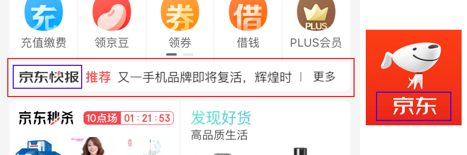 · 字体:这里的字体一般不会使用系统的默认字体,通常是经过设计的,会具有品牌字体相关性;比如“京东快报”字体和京东的Logo字体是有品牌关联的。
