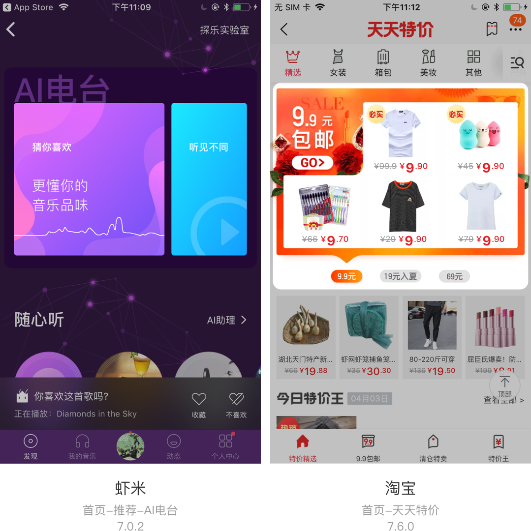 banner广告几乎是所有产品难以避免的存在,它也是产品出于运营需要或进行盈利的方式之一。banner数量一般3-8个不等,可以左右滑动查看,点击可进入相关专题或是详情页面。电商类产品的banner是根据用户喜好生成的,系统推荐给用户可能感兴趣的内容,点击率可想而知。