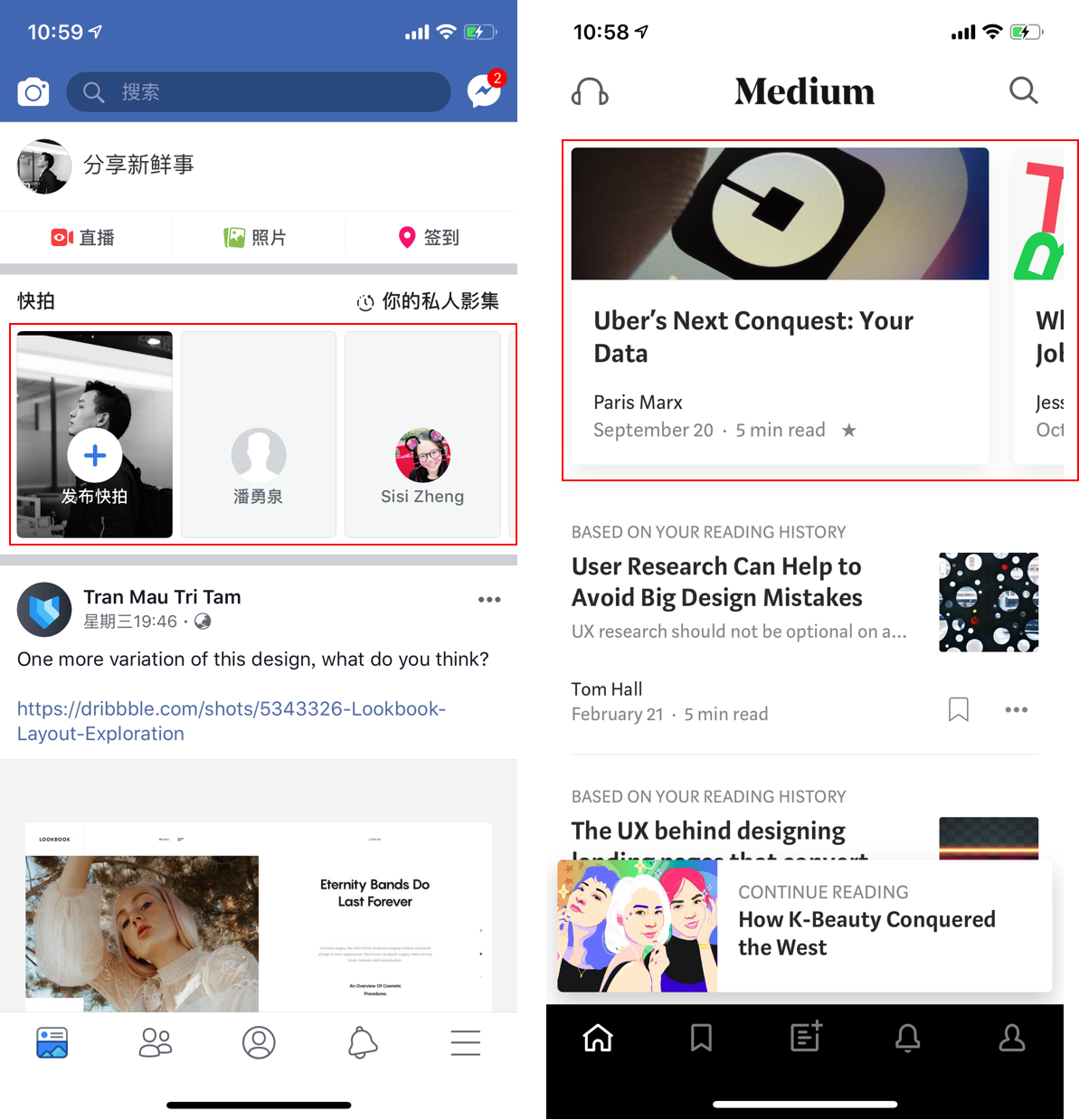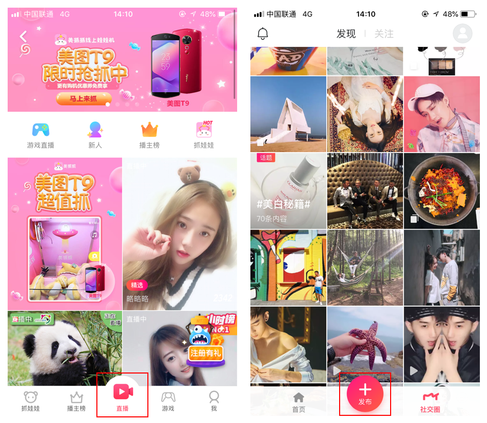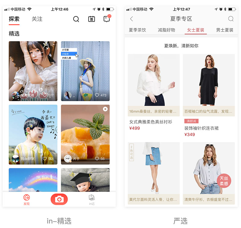 设计上会和其他标签有明显区分并重点突出了自己,很容易吸引用户的注意力,也有鼓励用户使用该功能的意味,但是因为过于明显所以会弱化其他功能入口;比如带有社交属性的产品,会希望用户多发布一些UGC内容,常采用这种导航形式;这类导航里常放置用户最多使用的或是产品最重要的功能,拓展的功能数量不宜过多;