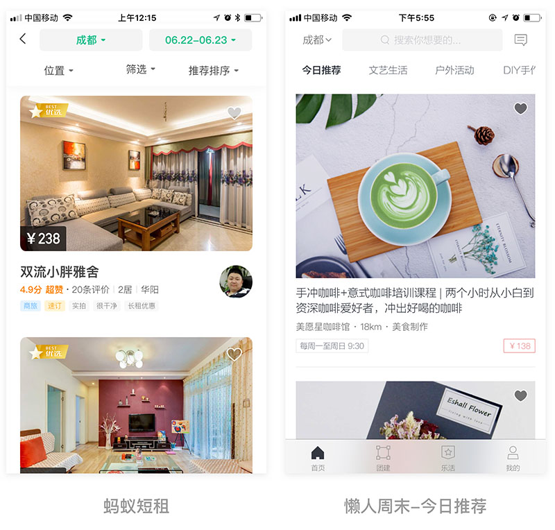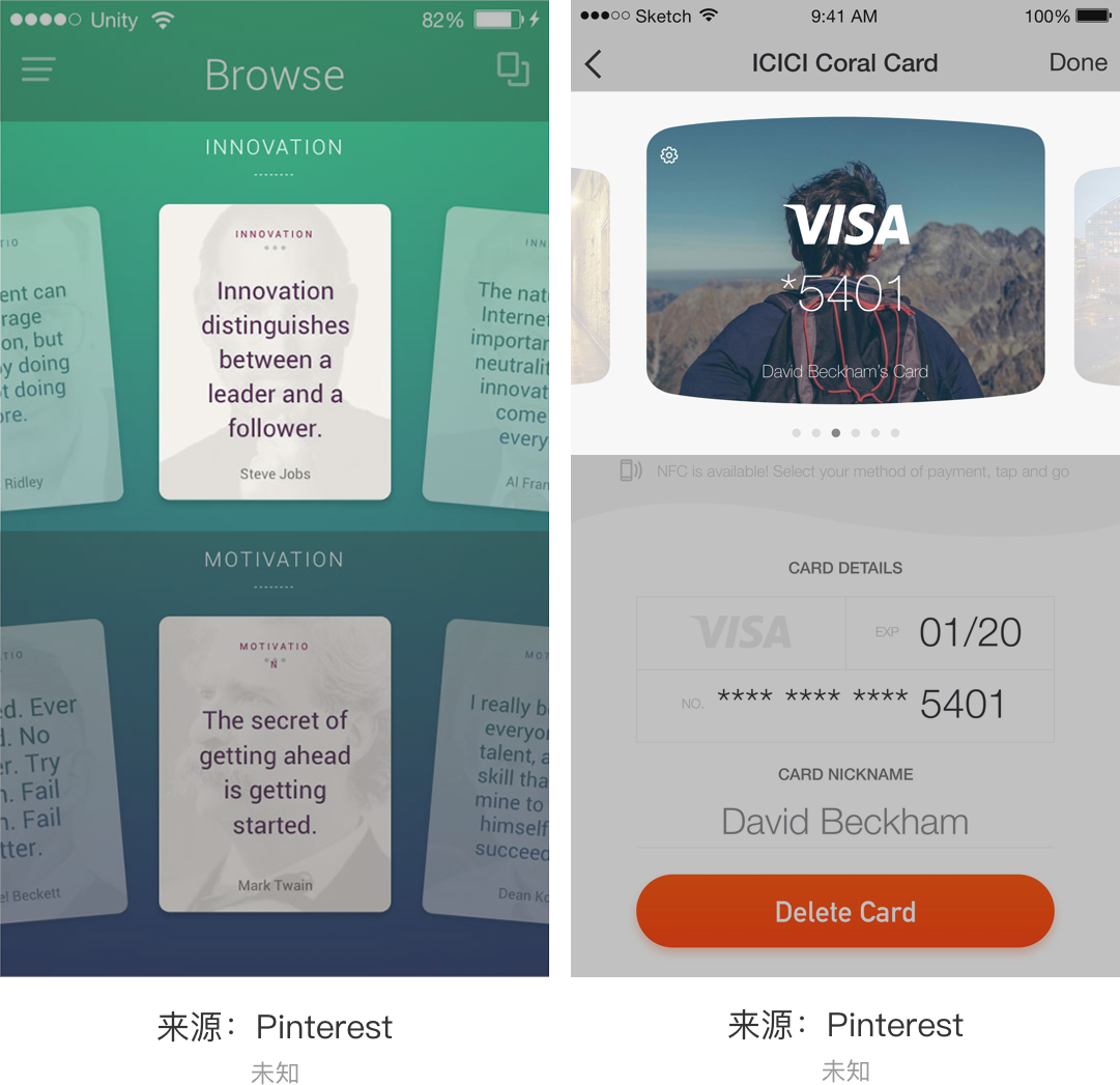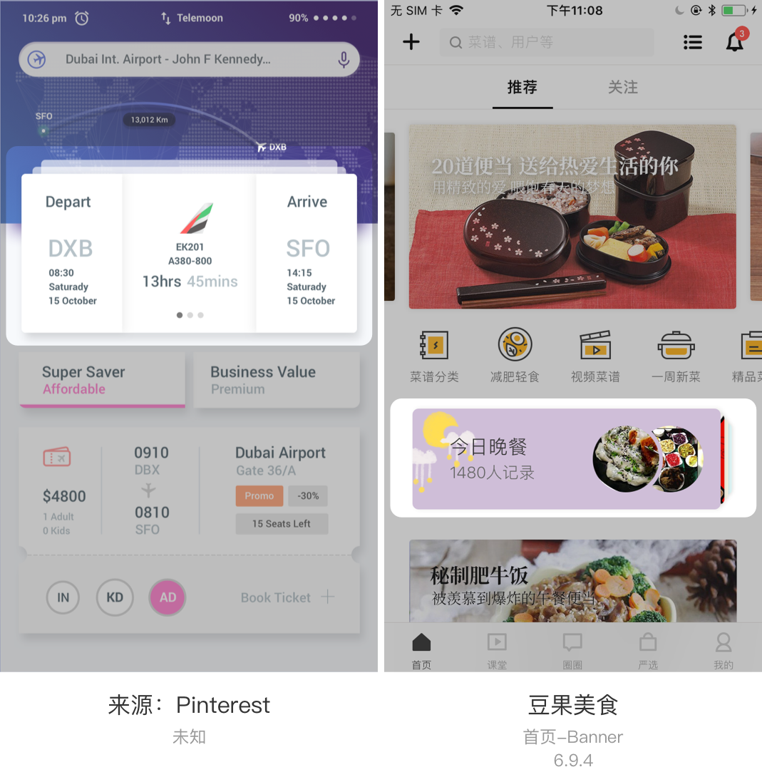 纵向层叠样式一般适用于首页,且与产品背景图相结合的形式出现,例如:上图左一,每个Card显示不同的航班信息。