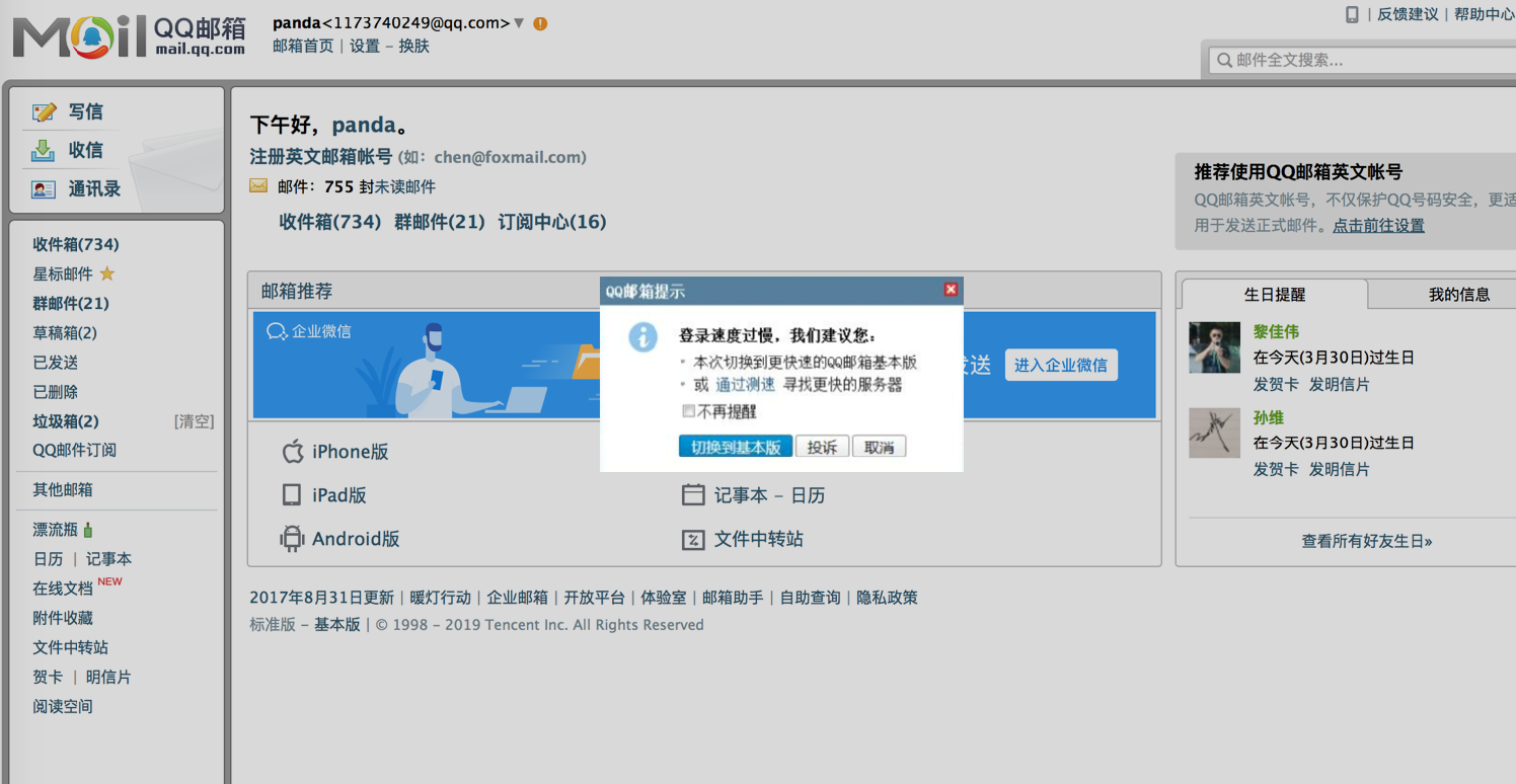 在我们使用QQ邮箱的时候会出现一种情况——那就是当网络较差的时候,登录超过一定时间还没有成功的话,系统会建议用户切换更快速的QQ邮箱基本版,保证用户邮件核心的收发功能的正常使用。这样很讨巧地避免了用户需要长时间等待才能使用邮箱的情况。