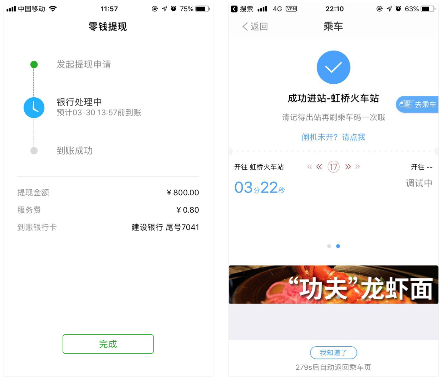 再如:微信的零钱提现成功界面会给用户一个预估到账时间;metro大都会APP扫码进站后,会告知用户最近一班地铁还需多长时间才能到达。这些方式都消除了用户在等待过程中的“无知感”,有效的缓解了等待过程中的焦急情绪,从而提升了等待过程的体验。