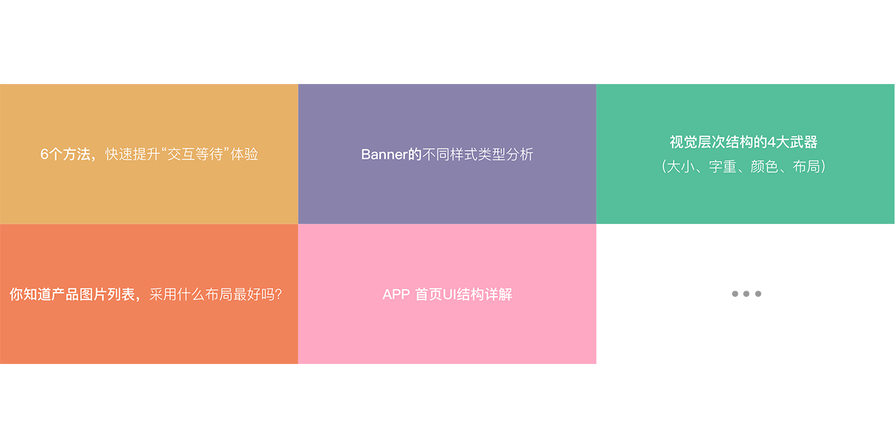 2. 第二种就是先加载出页面的框架再加载出页面的内容,比如先加载图片占位符,占位符可以是灰色或产品主色(+logo或icon) / 彩色(后台设置颜色,随机出现),接着再加载页面文字,最后再加载占位符位置上的图片;