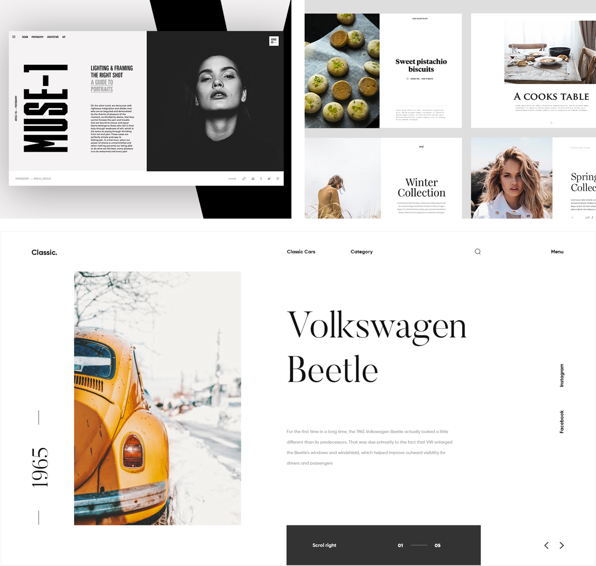 如果你的产品数量较少,你可以采用大图展示。如果你的产品是图片类,图片质量较高,同时产品以图片对比为主时,你可以采用大图布局。