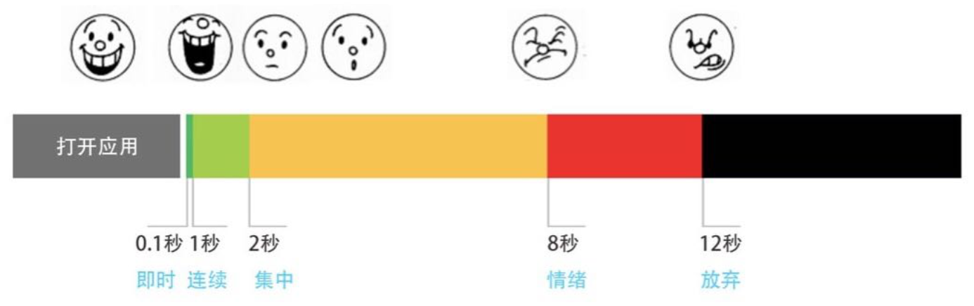 研究表明:绝大部分人对等待的忍耐度是有限的。一般来说,2s以内的反馈,用户的心情是愉悦的;8s以外的反馈,用户的心情往往是焦躁甚至是愤怒的。
