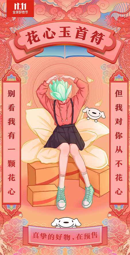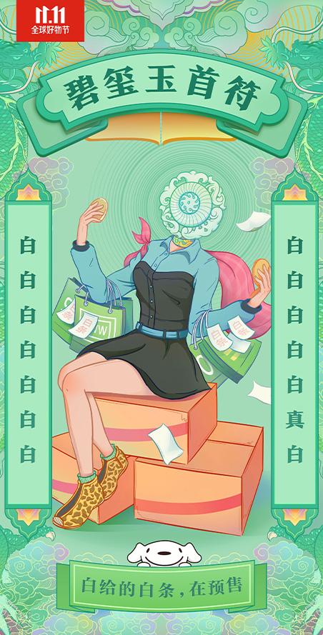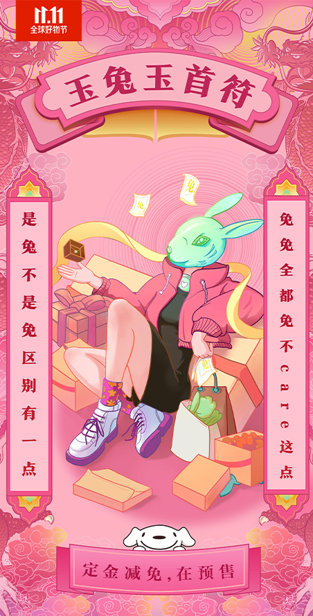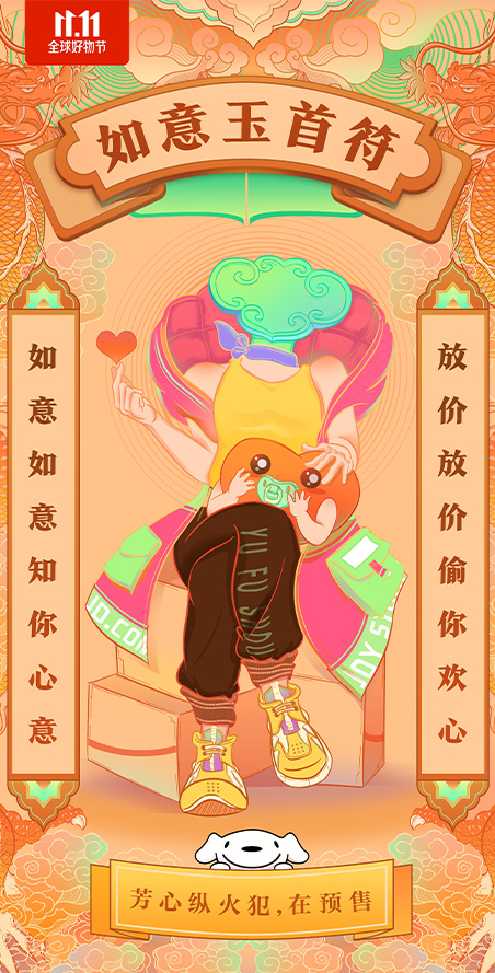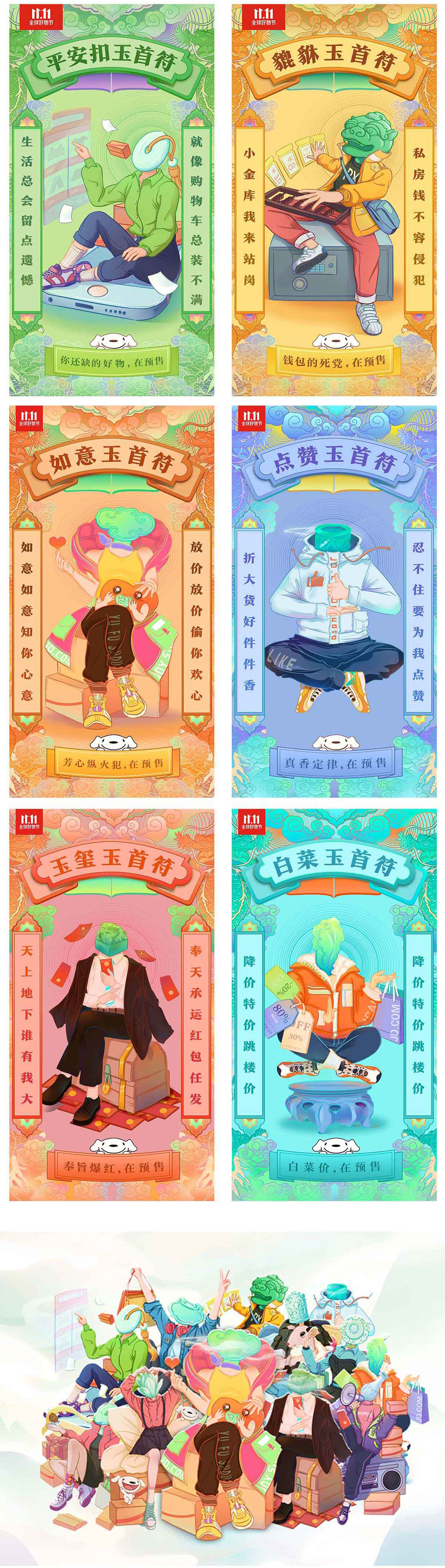 回答:根据互动的业务诉求和概念包装,整体风格的设定将围绕三个关键词展开:玉首(传统)、年轻(新潮)、热闹(大促氛围);最后推导出“新中式”为本次互动的整体视觉风格方向。