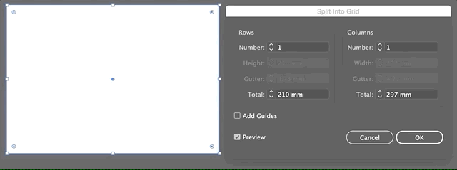 然后我们选中这个矩形,这时我们在如下菜单中找到“分割为网格(Split Into Grid)”:对象 > 路径 > 分割为网格