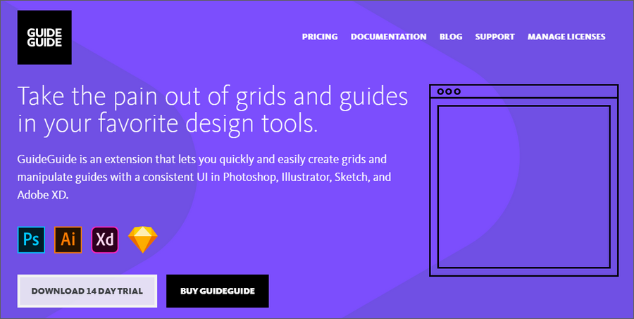 GuideGuide是一款可以应用于PS、AI、Sketch及XD里面的划参考线插件,安装非常方便。此外,它支持一键生成参考线,也可针对画布或者自定义选区新建参考线等。