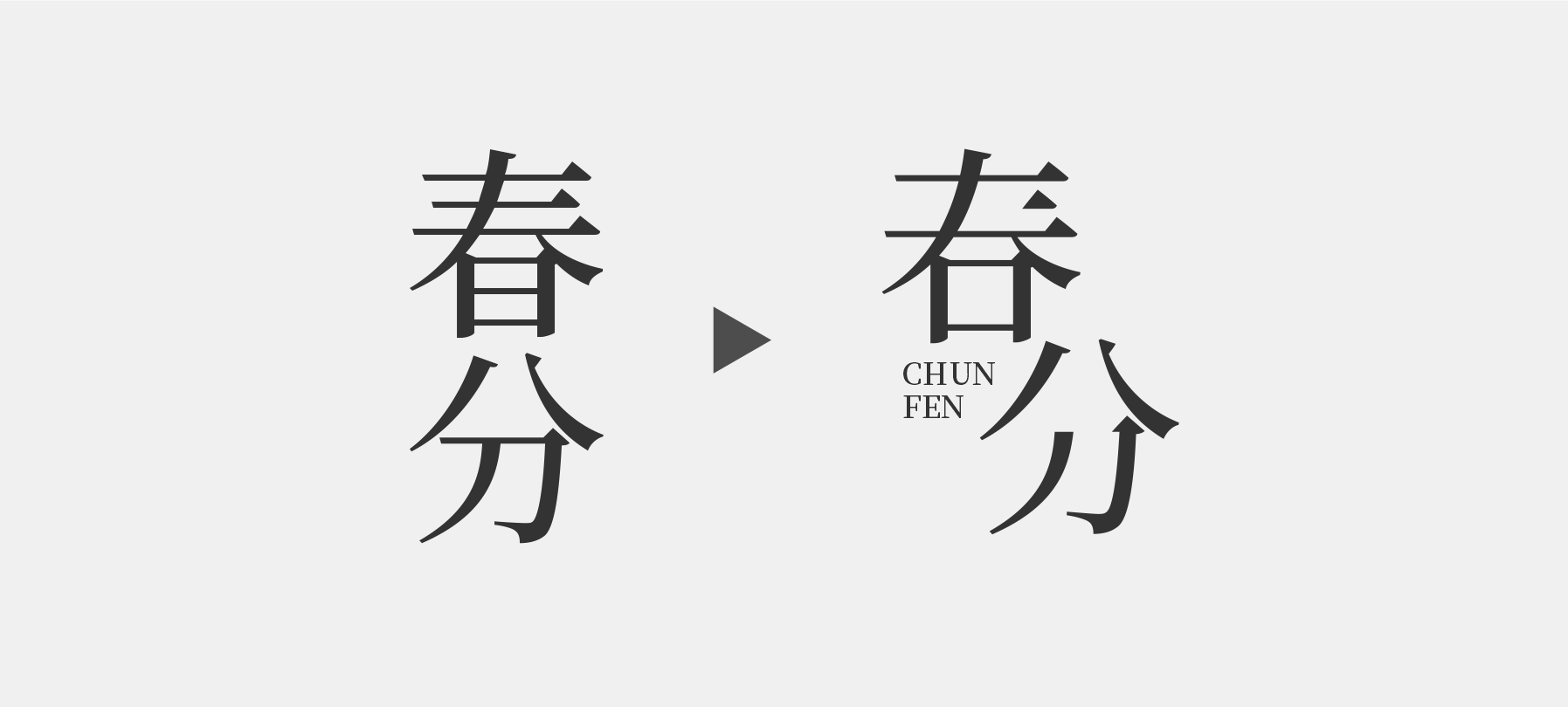 首先主题是春分,第一时间想到的字体就是书法体与宋体,这里我选用宋体来做,这里分享一个方法,在字体设计中,笔画缺失是一种常用的设计手法。为了不让文字失去辨识度,避免删除过多的笔画。这种方式一般适用于衬线字体,且通常去掉的笔画是横向笔画。