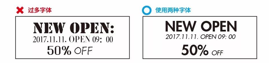很多初级设计师会忽略字体的选择,字体的风格也是绝大程度影响画面风格。选择字体的原则是“不要使用多种字体”。单一版面中使用多种字体,只会让整体缺乏统一性,导致失去视觉焦点。