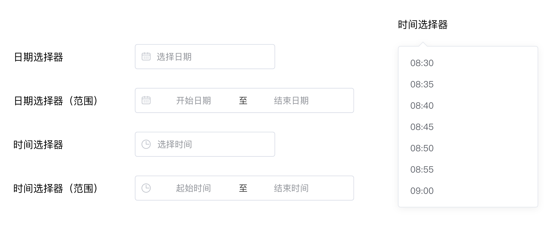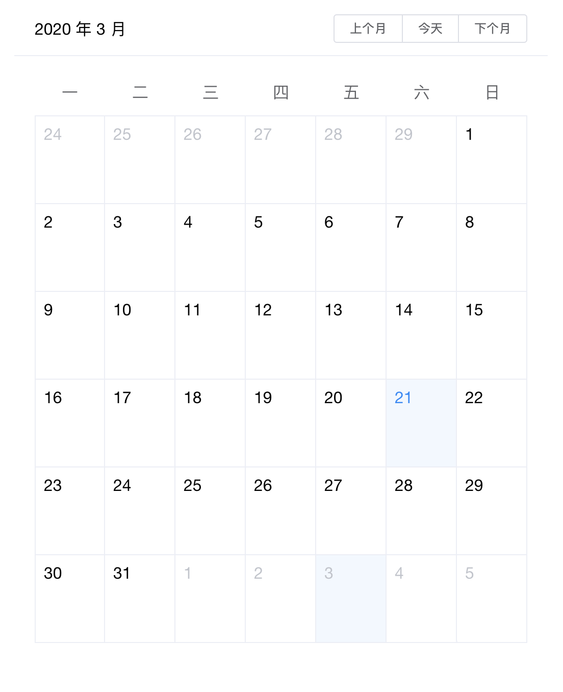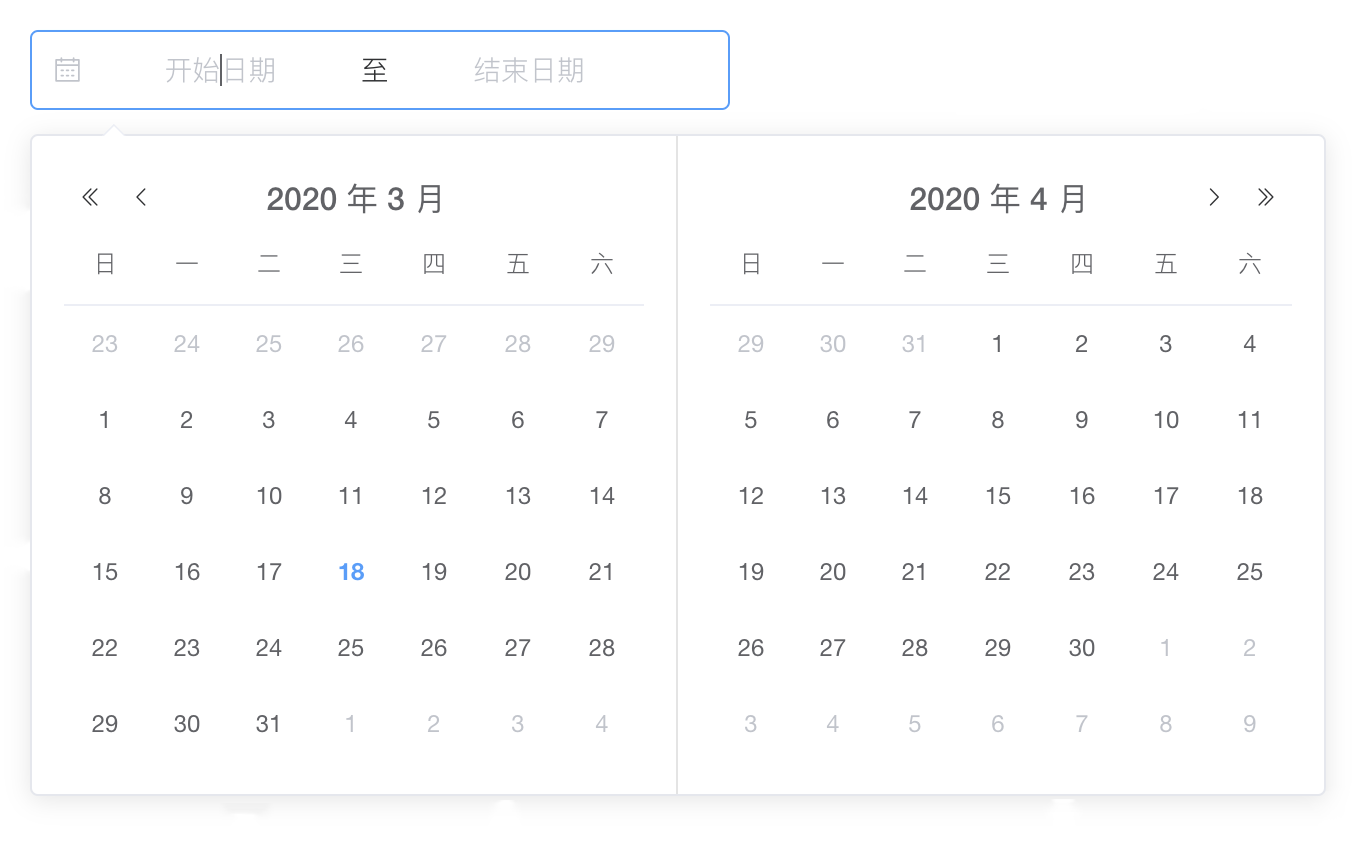 输入或选择日期的控件,当用户需要输入一个日期,可以点击标准输入框,弹出日期面板进行选择。