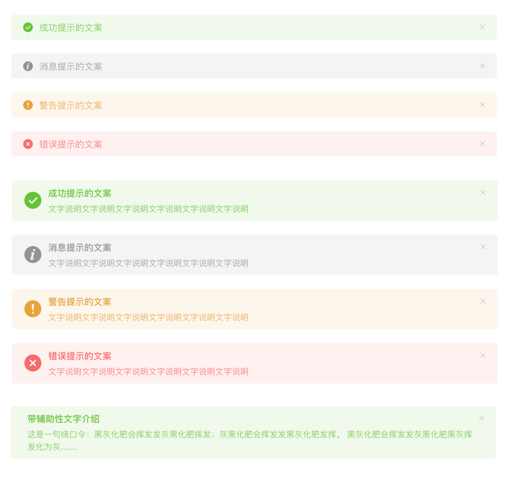 常用于主动操作后的反馈提示。与 Notification 的区别是后者更多用于系统级通知的被动提醒。