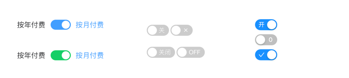 表示两种相互对立的状态间的切换,多用于触发「开/关」。