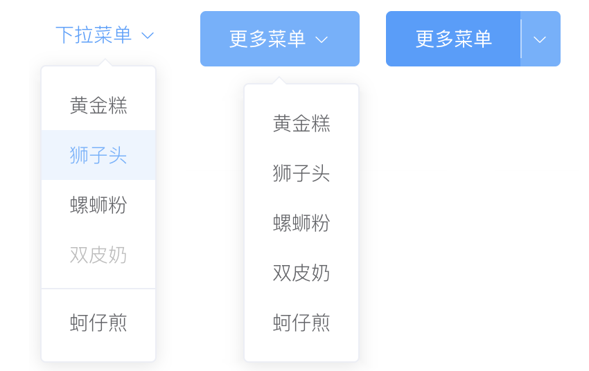 当页面上的操作命令过多时,用此组件可以收纳操作元素。点击或移入触点,会出现一个下拉菜单。可在列表中进行选择,并执行相应的命令。