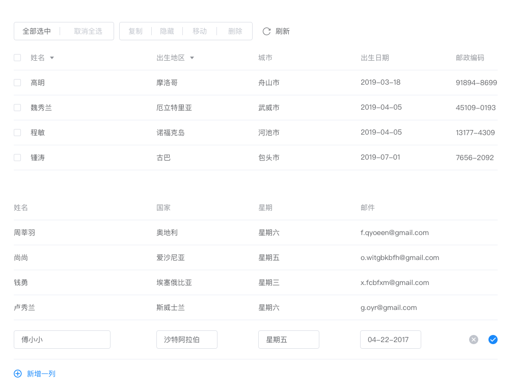 用于展示多条结构类似的数据,可对数据进行排序、筛选、对比或其他自定义操作。
