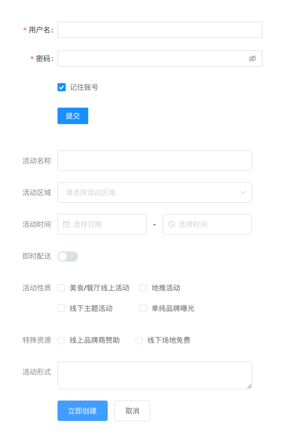 由输入框、选择器、单选框、多选框等控件组成,用以收集、校验、提交数据