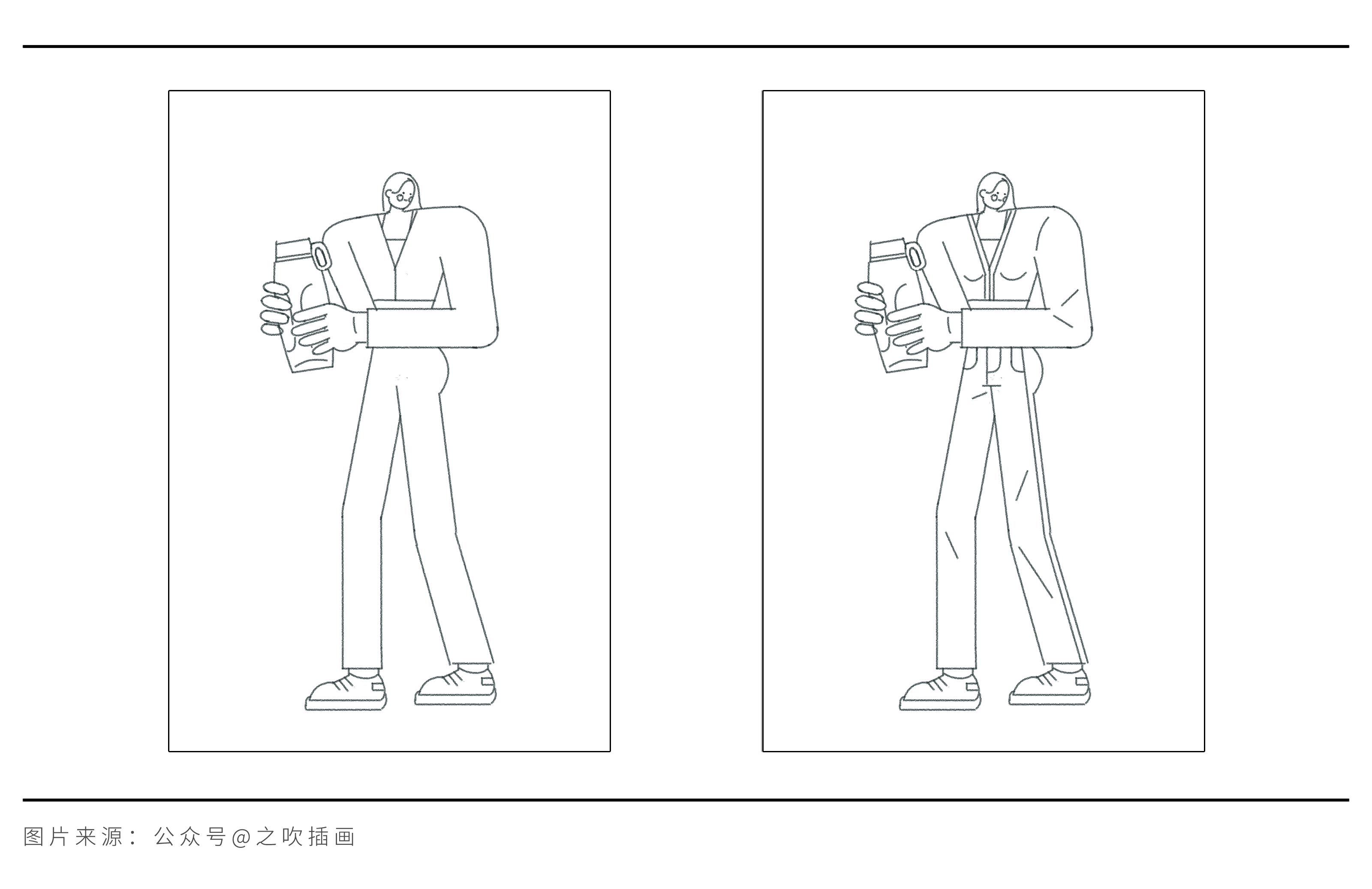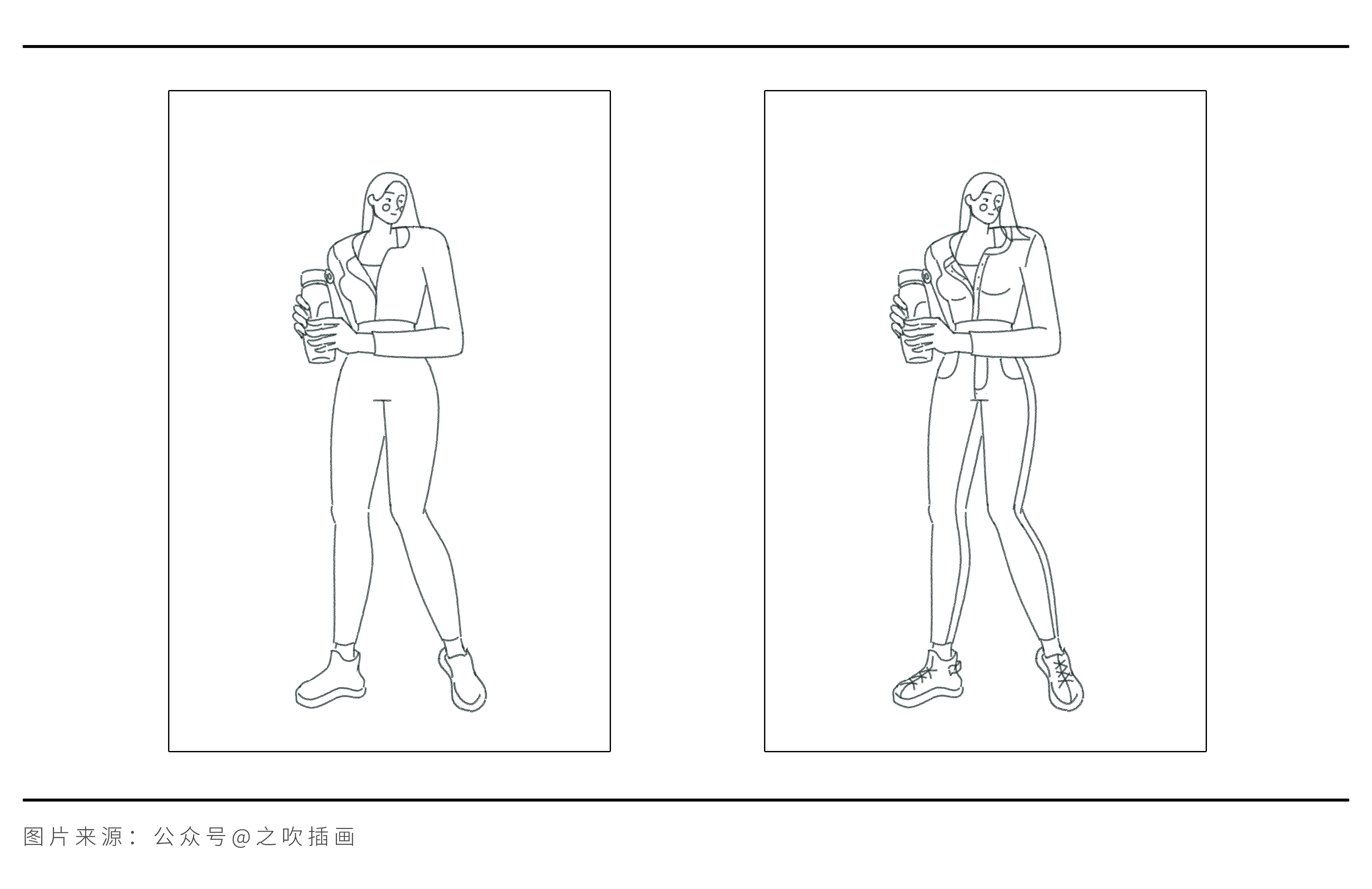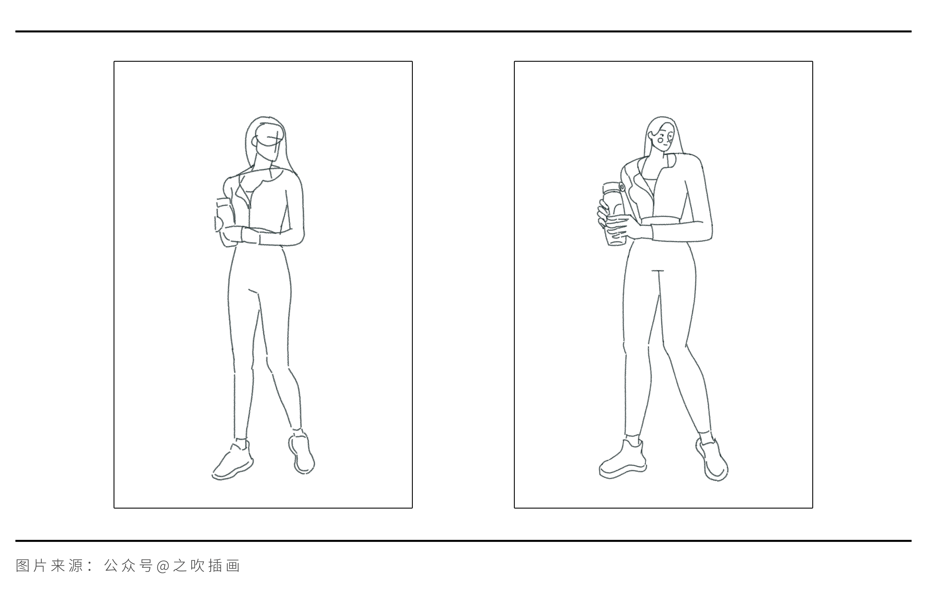 我们以画面中通常作为主体的人物,来实际示范如何把素材转化成绘画语言。而无论是哪种风格,造型的提取都需要经过3个步骤:概括轮廓、优化轮廓、添加细节。