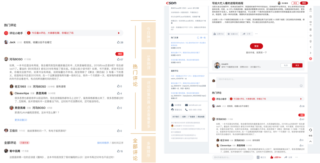 下面的内容,我会通过CSDN的PC端博客详情页的评论区为例,具体分析用户发表评论的动机、他们想看什么内容,以及设计中可能会遇到的细节问题,期望能够给看到文章的你有一些启发。
