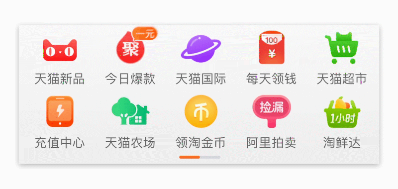 这种动效不应用于金刚区图标本身,反而应用于金刚区中的“更多”图标。