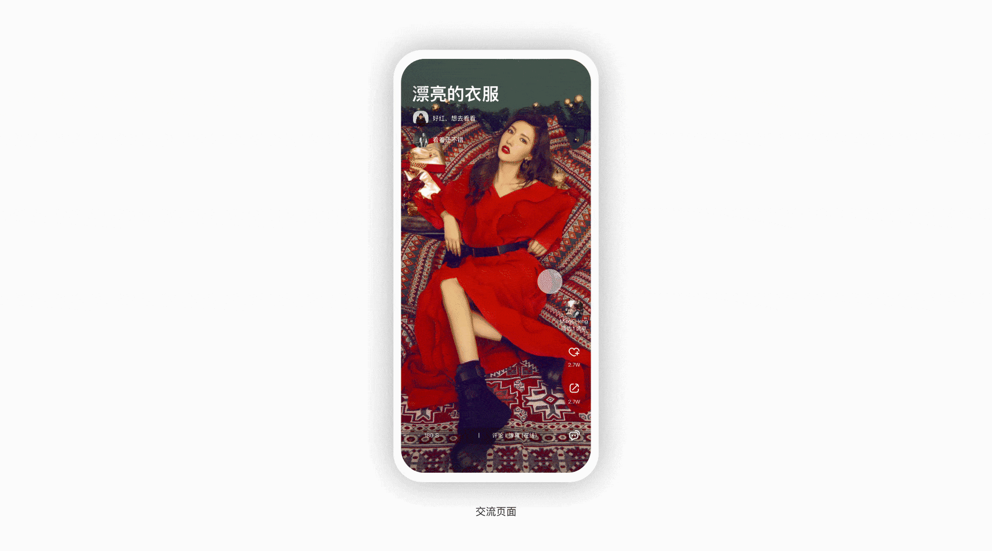 弹幕区域,将经过筛选后的信息,展示在左上角,增加消费者对商品的好感度。同时缓解因视频过长引发的,精力过于过度消耗。