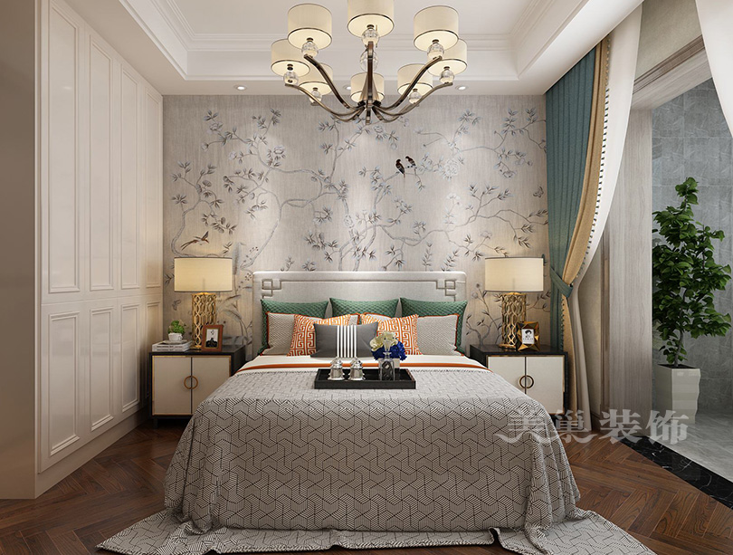 郑州中建翰林苑180平美式四居装修,唯美又时尚的设计理念——主卧全景布局