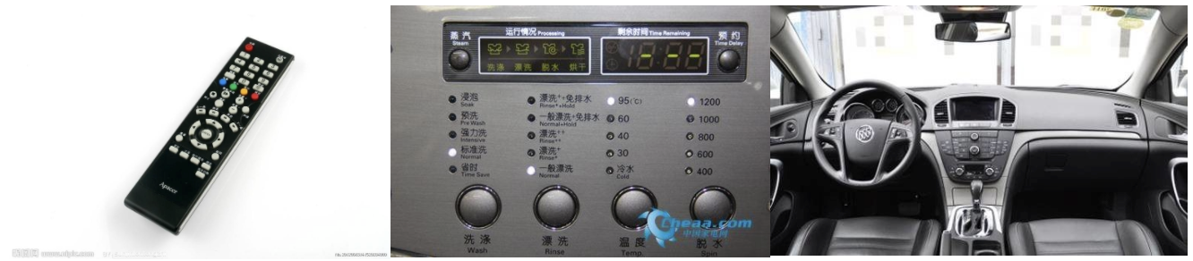 当我们面对全是按钮的电视遥控器、洗衣机、汽车控制台时,是不是有种崩溃的情绪(可能面对汽车不会有这种情绪,因为能买得起车就不错了,还敢嫌弃?)。用户通常只会用到这些按钮中几个按钮,剩下的按钮一年用不到一次。如果你是设计师,要优化以下产品,你会怎么设计?或许8/2法则会是个好的方法。