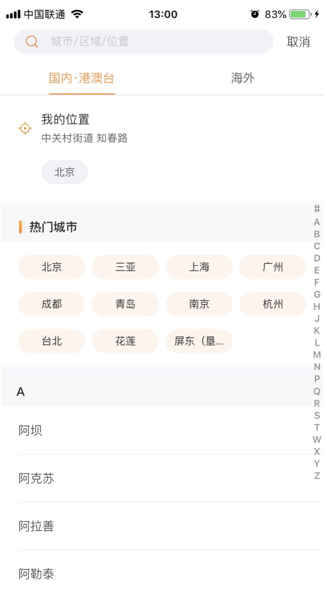 5、我们都使用过预定酒店的APP,这些APP在用户选择预定酒店的目的地时,会将你的定位城市和热门城市优先显示在第一屏顶部,帮助用户快速选择城市。根据平台出行的大数据,平台将80%的用户常住的20%的酒店优先显示出来,能帮助用户更快、更高效的完成目的地选择,提升用户下单效率。