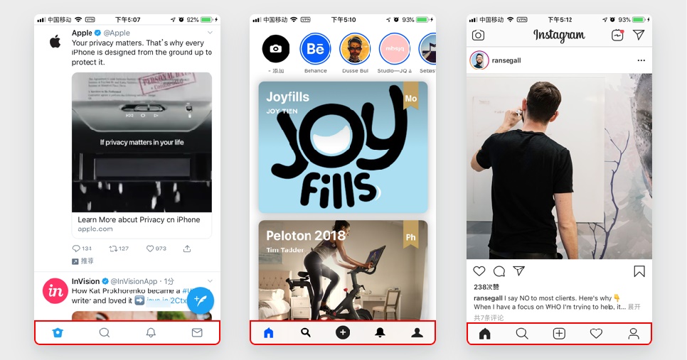案例2:twitter、Behance、Instagram tabbar