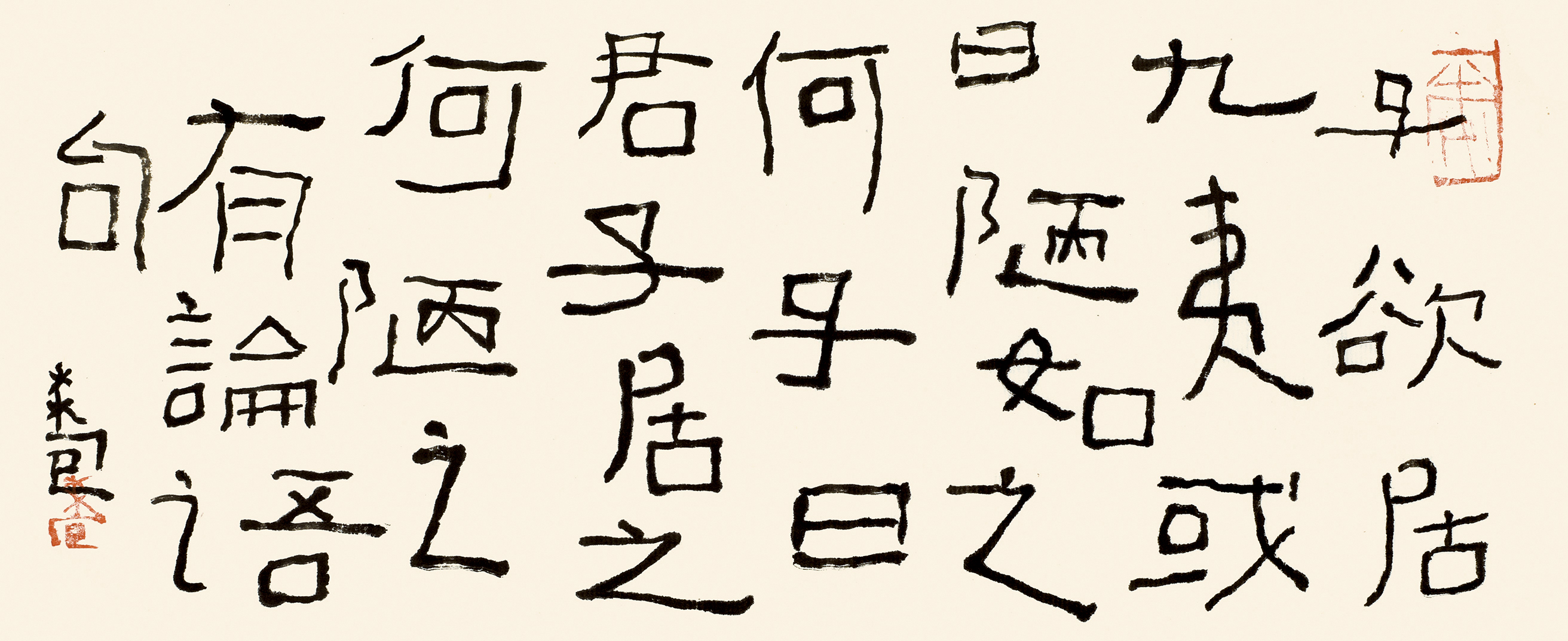 如果说,现代构成是书法现代性的形式标志,而平民化则是现代艺术最典型的精神特征。从这种意义上说,曾翔书法中所体现的平民精神和民间格趣,使他成为先锋书法艺术阵营中最具代表性的书法家之一。