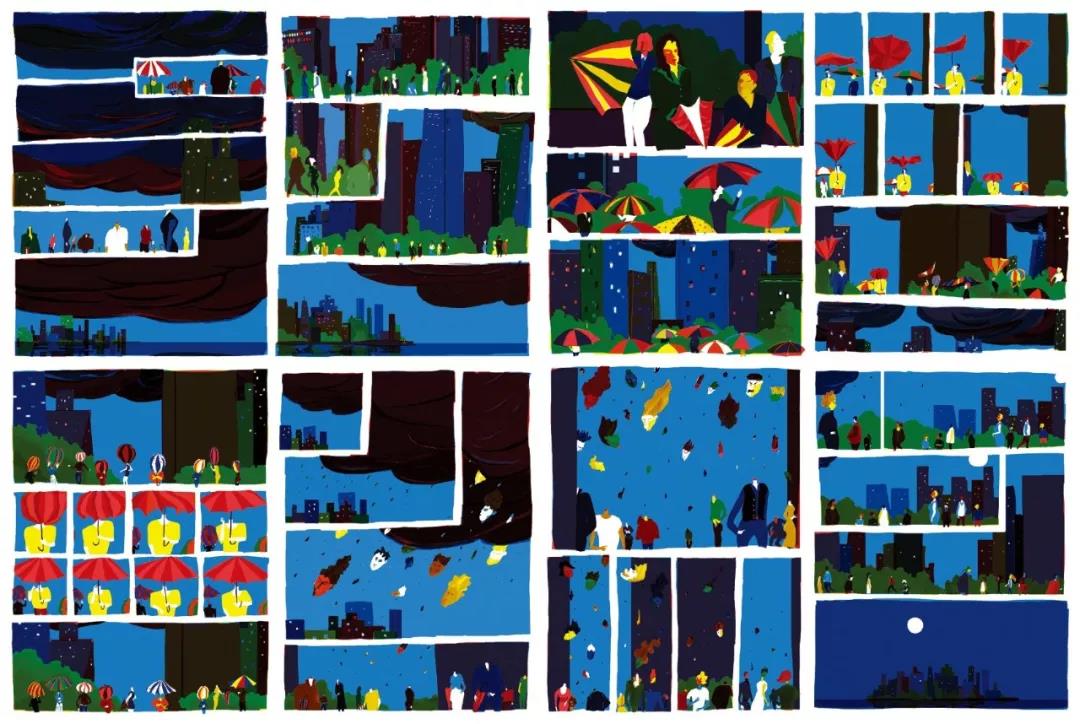 作品描述:“这是一本关于同一个世界的无言漫画书。我用大胆的构图和明亮的色彩来夸大戏剧性的故事情节。”