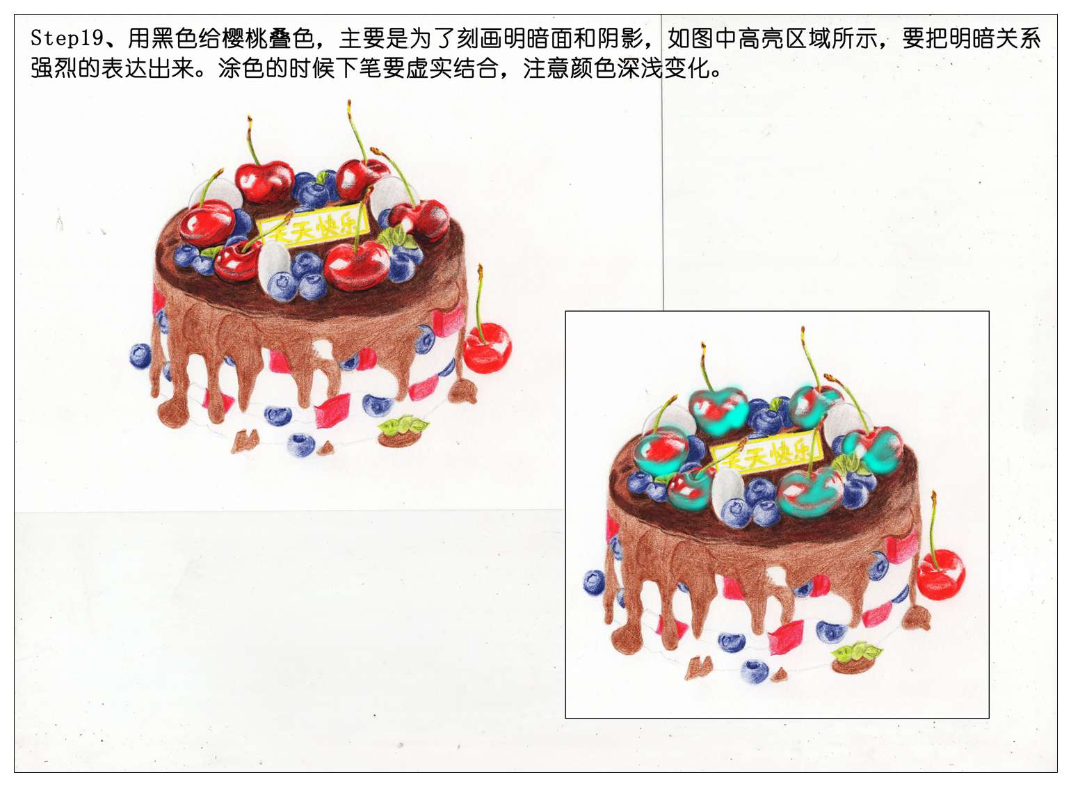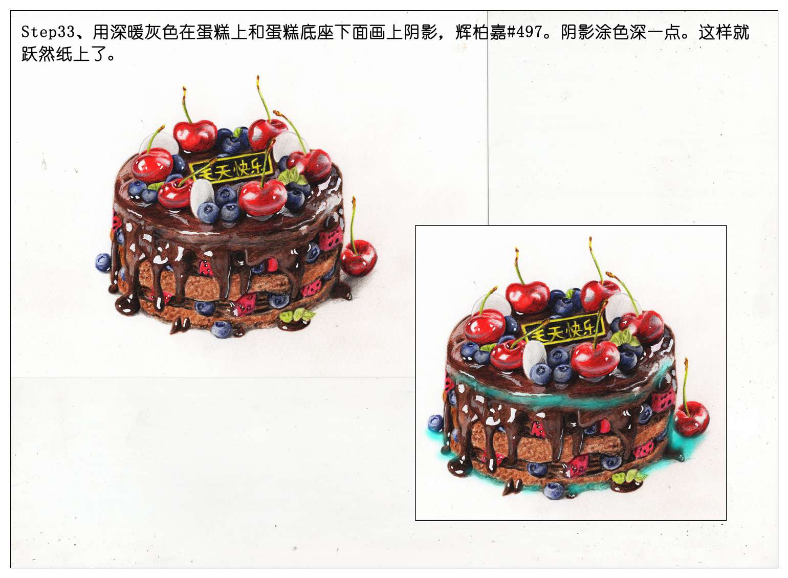 【驴大萌彩铅教程335】手绘美食甜品 巧克力裸蛋糕