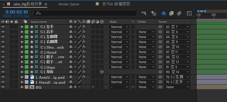 效果:当涉及大量图层,的动画时、通过改变图层颜色进行分类,该绑定的绑定,该跟随的跟随,这样就可以通过一个图层,来改变其他图层。对于K帧,做动画,大大提升效率,省掉很多麻烦