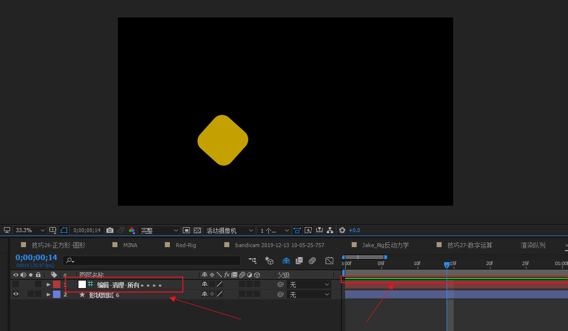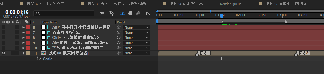 效果:图层标记是一个非常常用且方便的技巧,通过图层编辑,可以对合成内外的动画进行衔接调整。