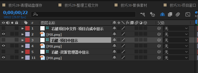 技巧三十二:素材、合成、资源管理器切换
