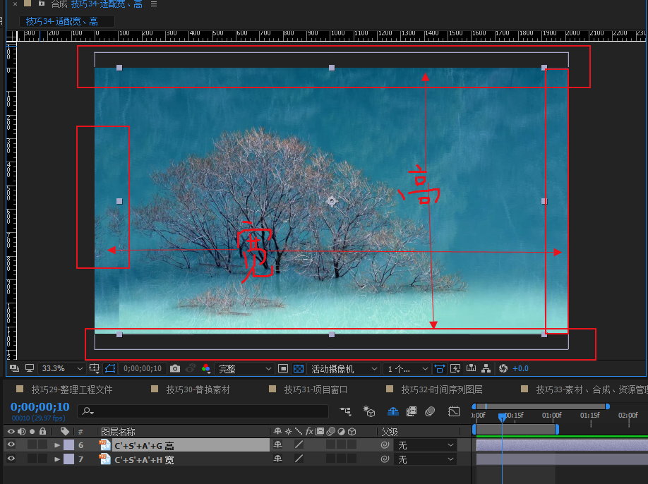 效果:导入素材可以通过快捷键快速设置适配合成大小的宽高