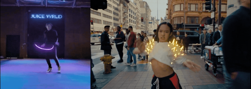 这种效果也有直接用于舞台表演,当舞台上的表演者带上发光的东西做动作的时候在高速度的情况下有这相似的视觉效果。