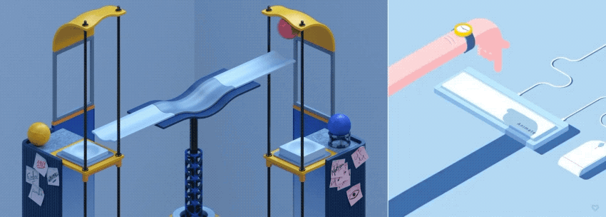现在在插画中加上一些流畅的小动效会显得插画活泼生动,对情感表达具有较强的表达,这一类型还是流行比较长时间了。