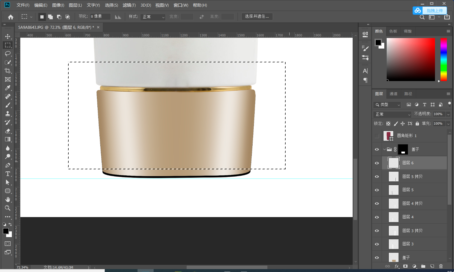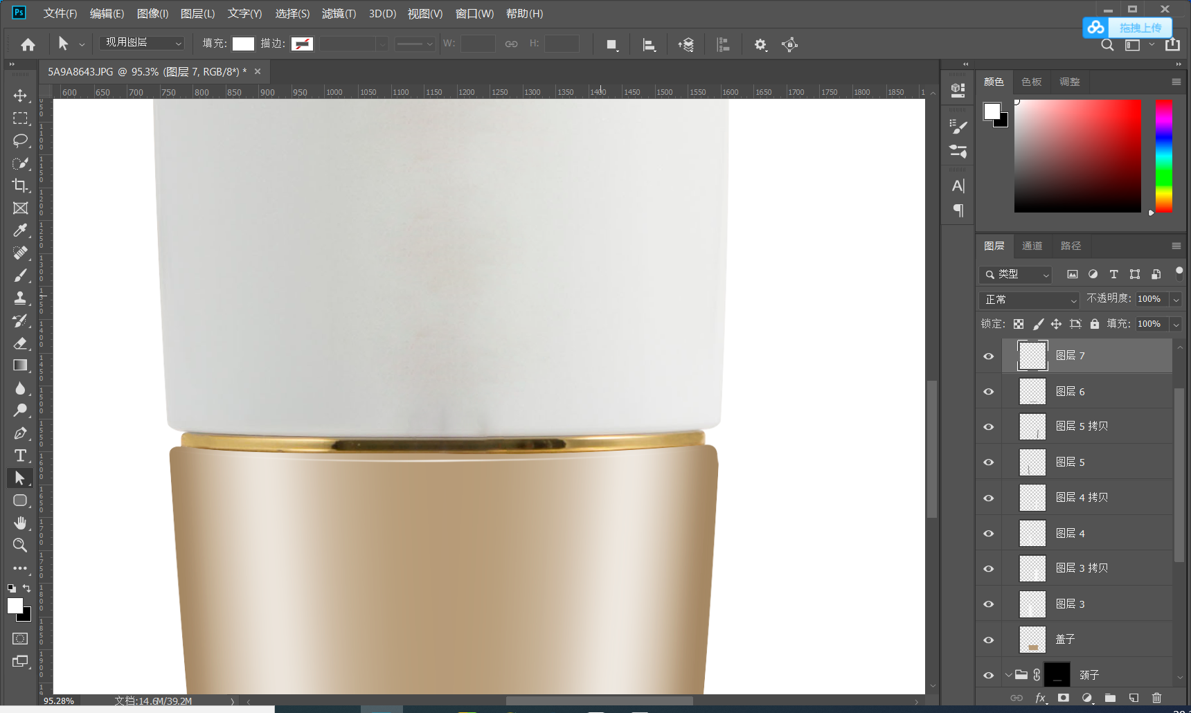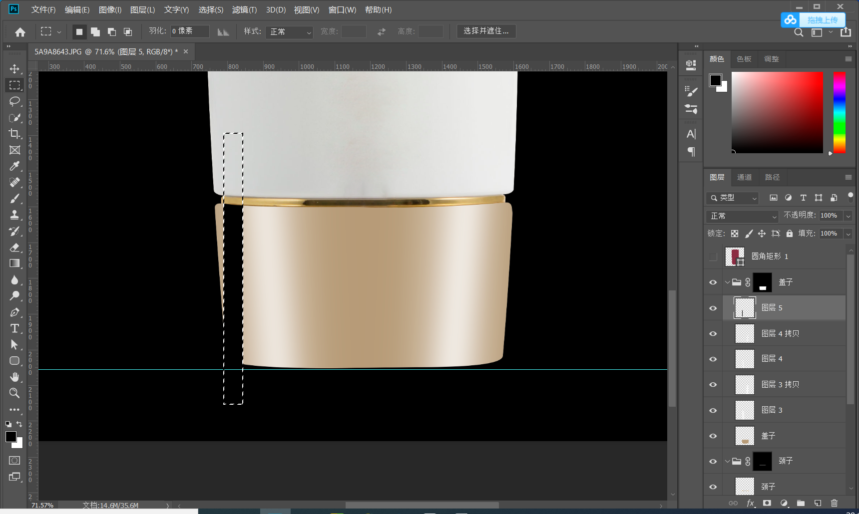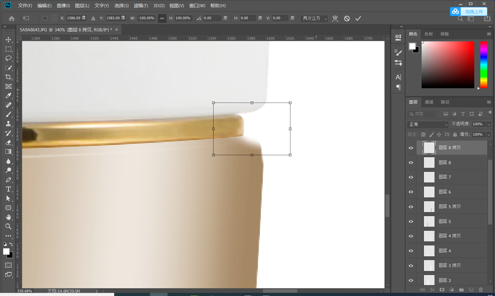 下面用到选区自由变换 使两边的扣除的区域可以更好的处理 抠图过程中就是对各个细节的处理把不需要的可以进行删除保留重要可以体现产品美感的部分保留下来