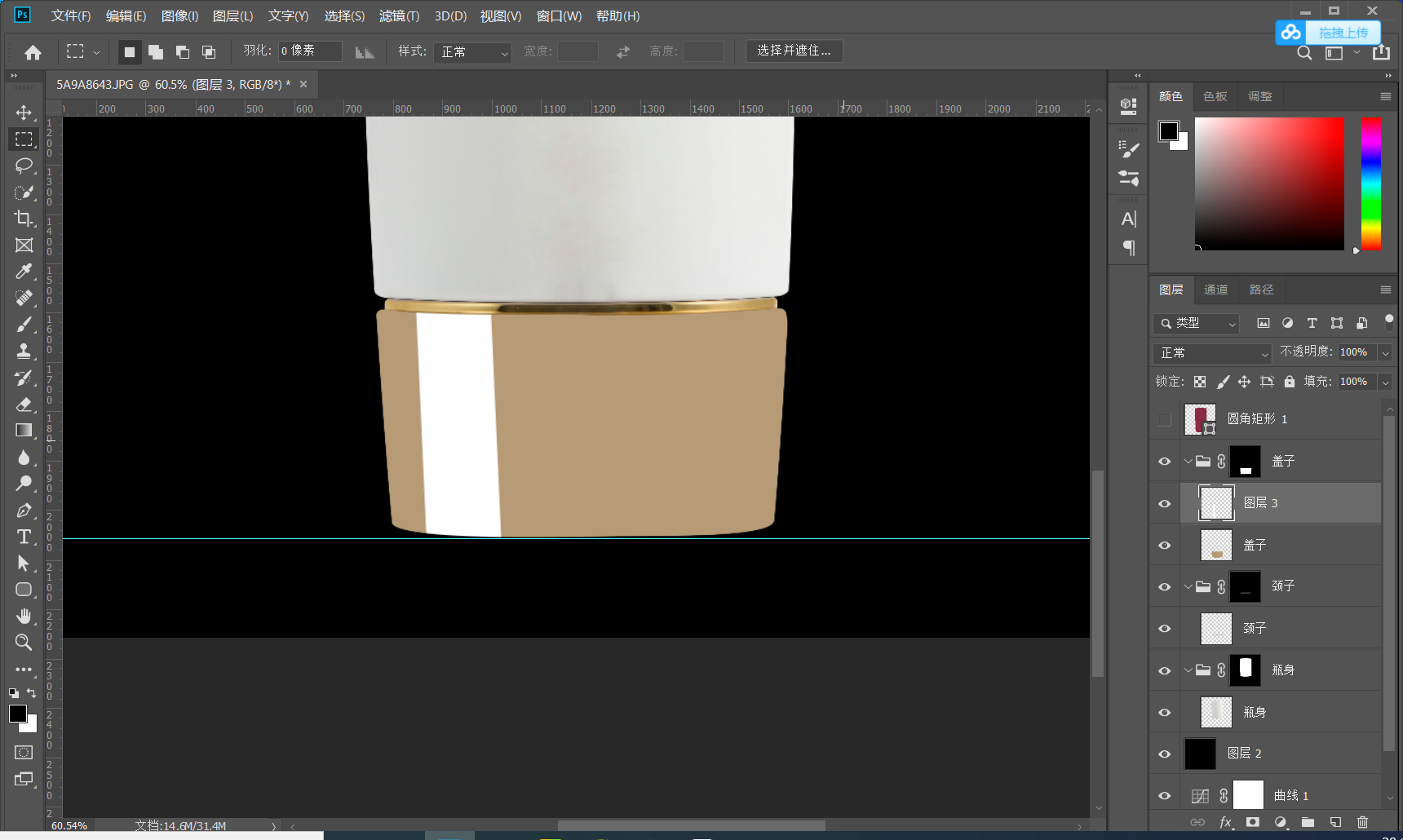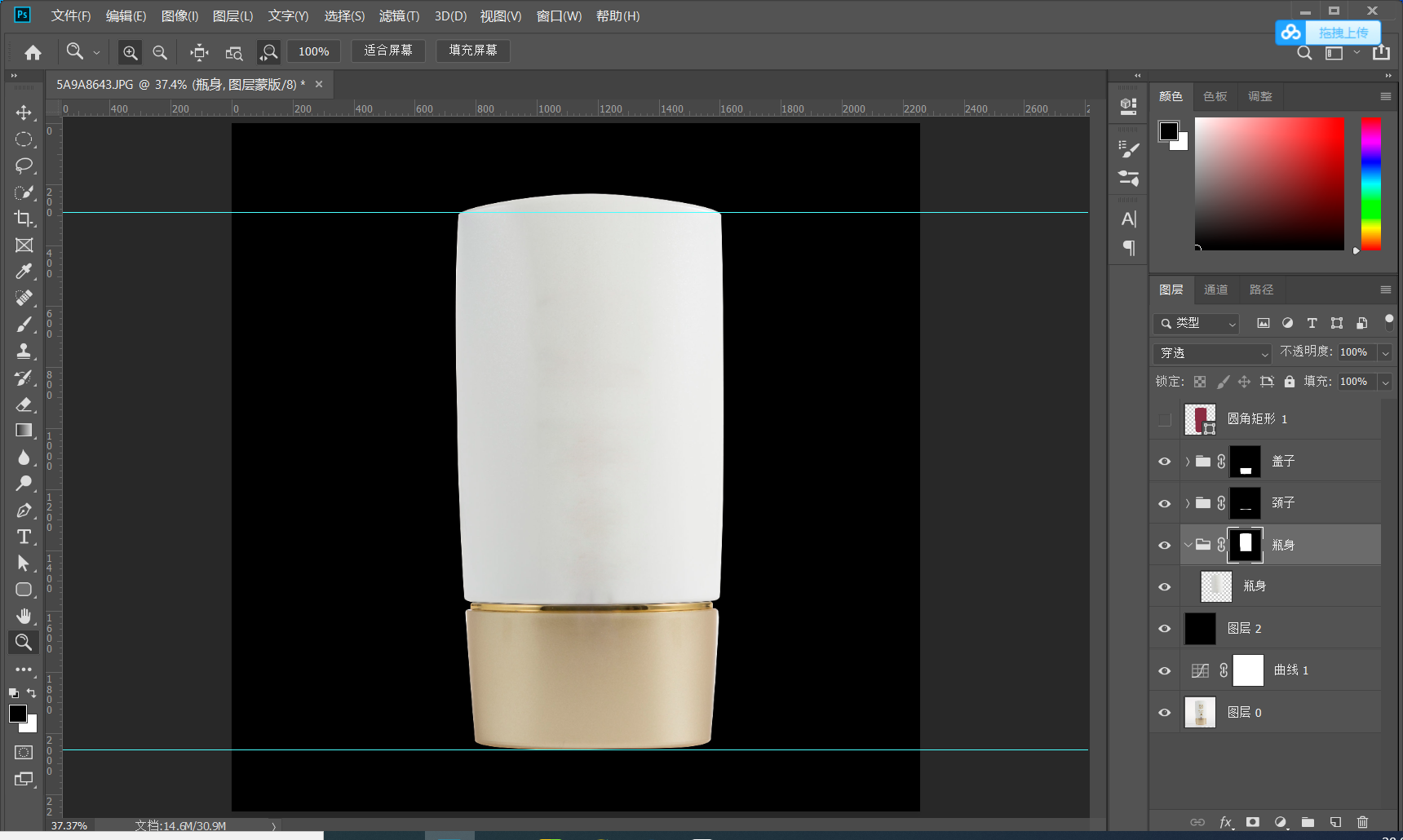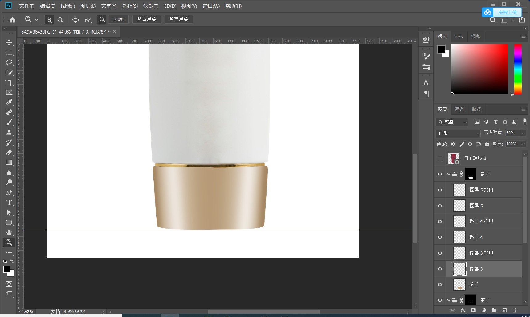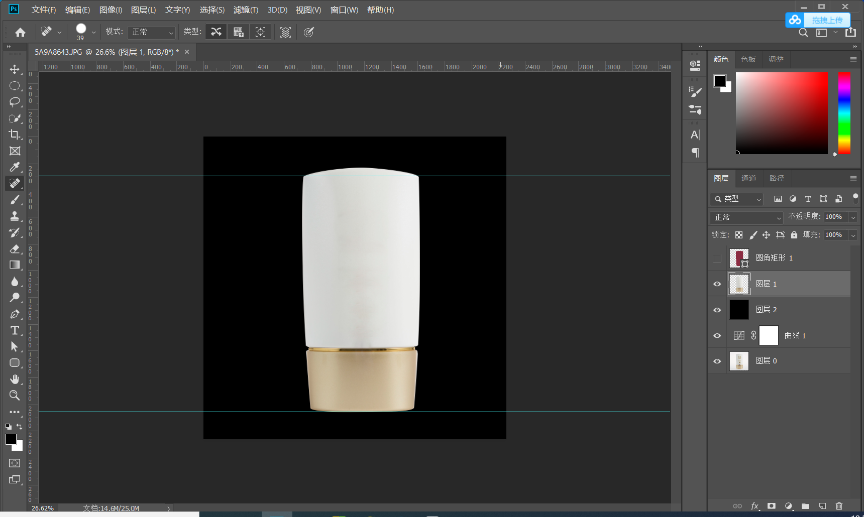 1.2建立参考线 打好参考线 确定产品的上下水平线 有的产品可能不是水平的可以通过自由变换调节 CTRL+T
