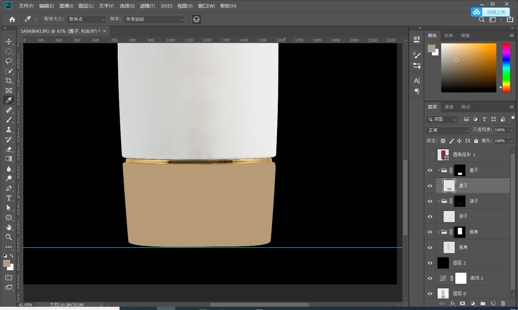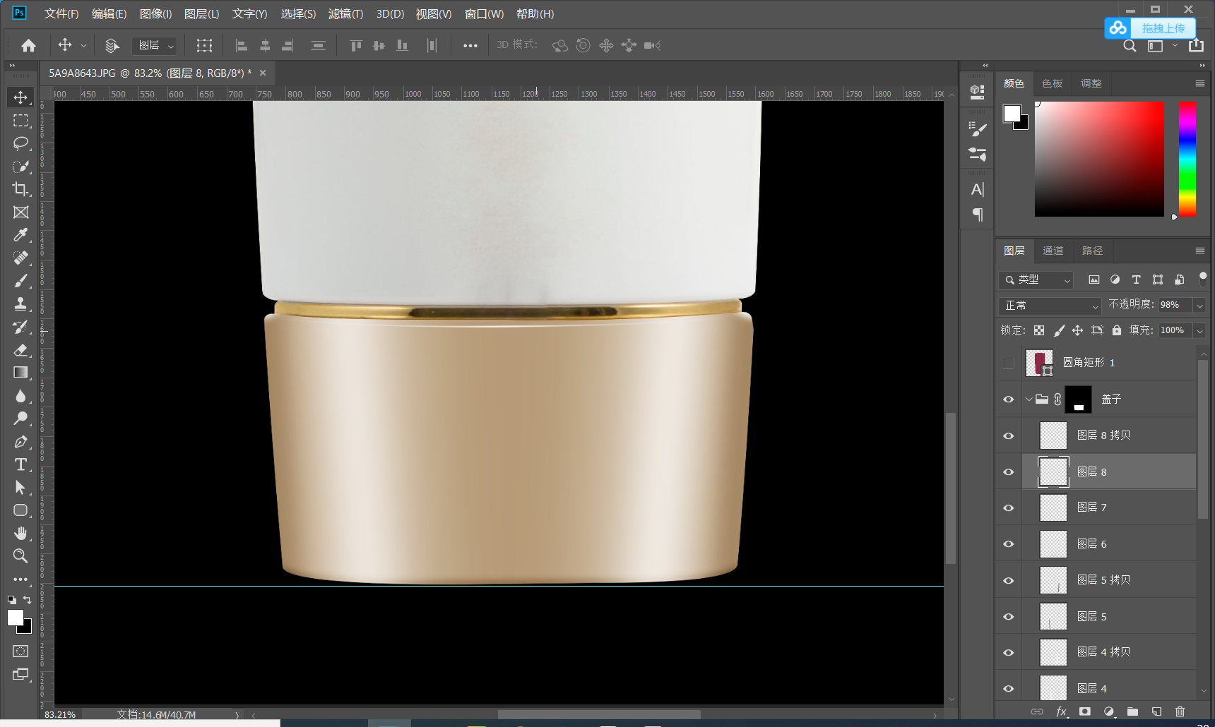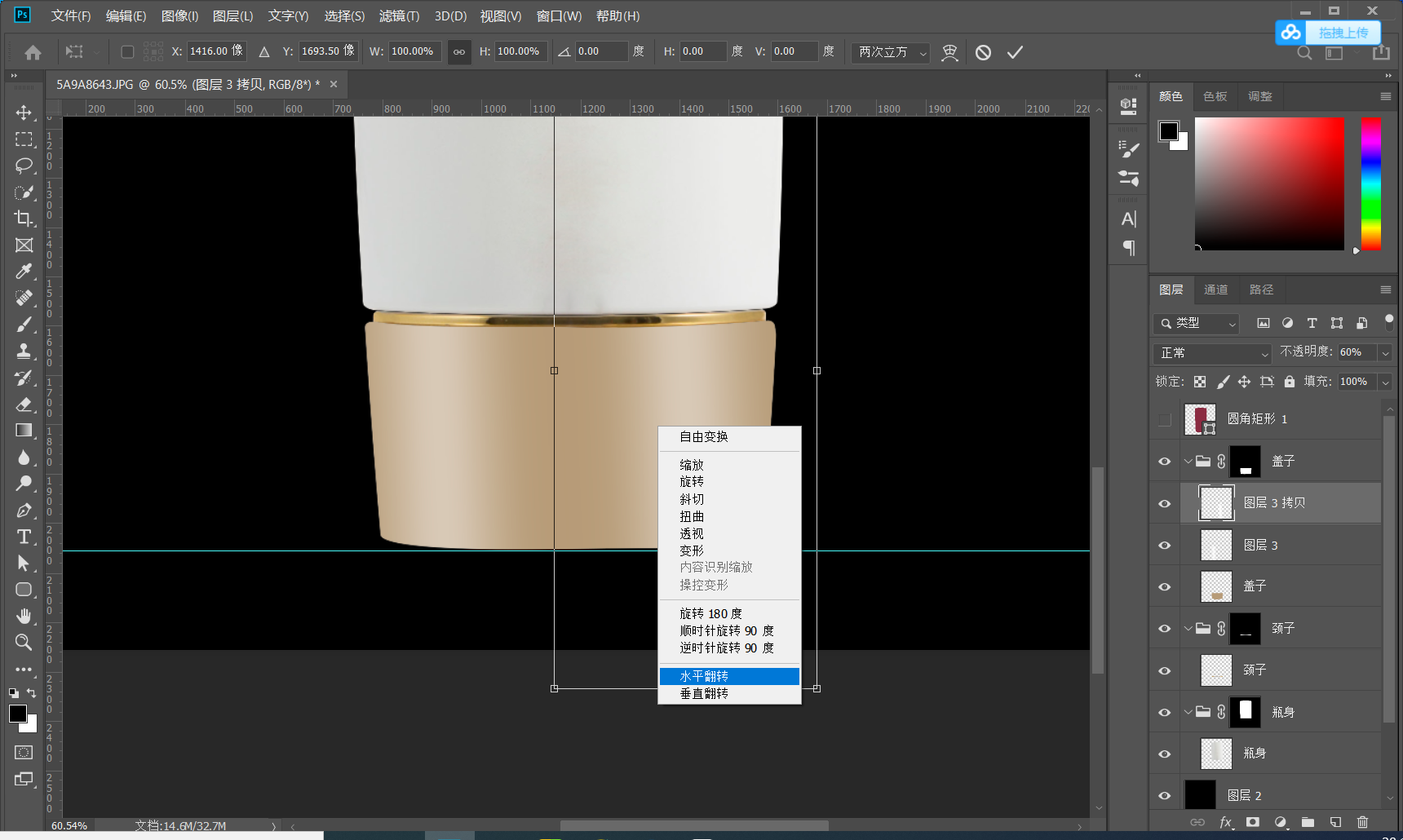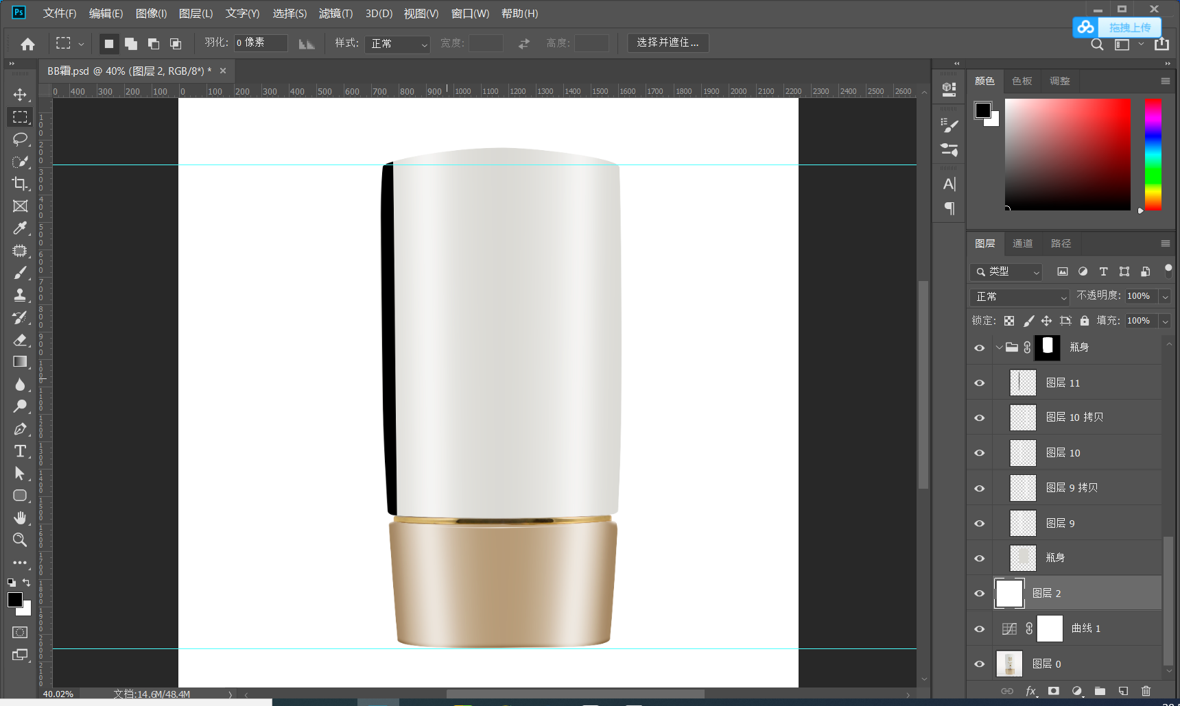 1.2建立参考线 打好参考线 确定产品的上下水平线 有的产品可能不是水平的可以通过自由变换调节 CTRL+T