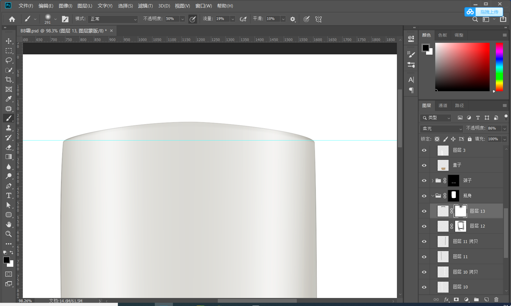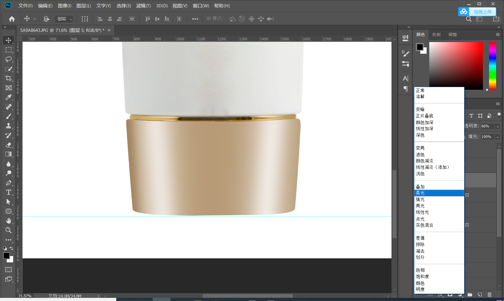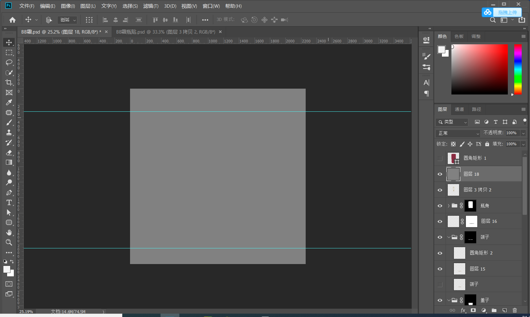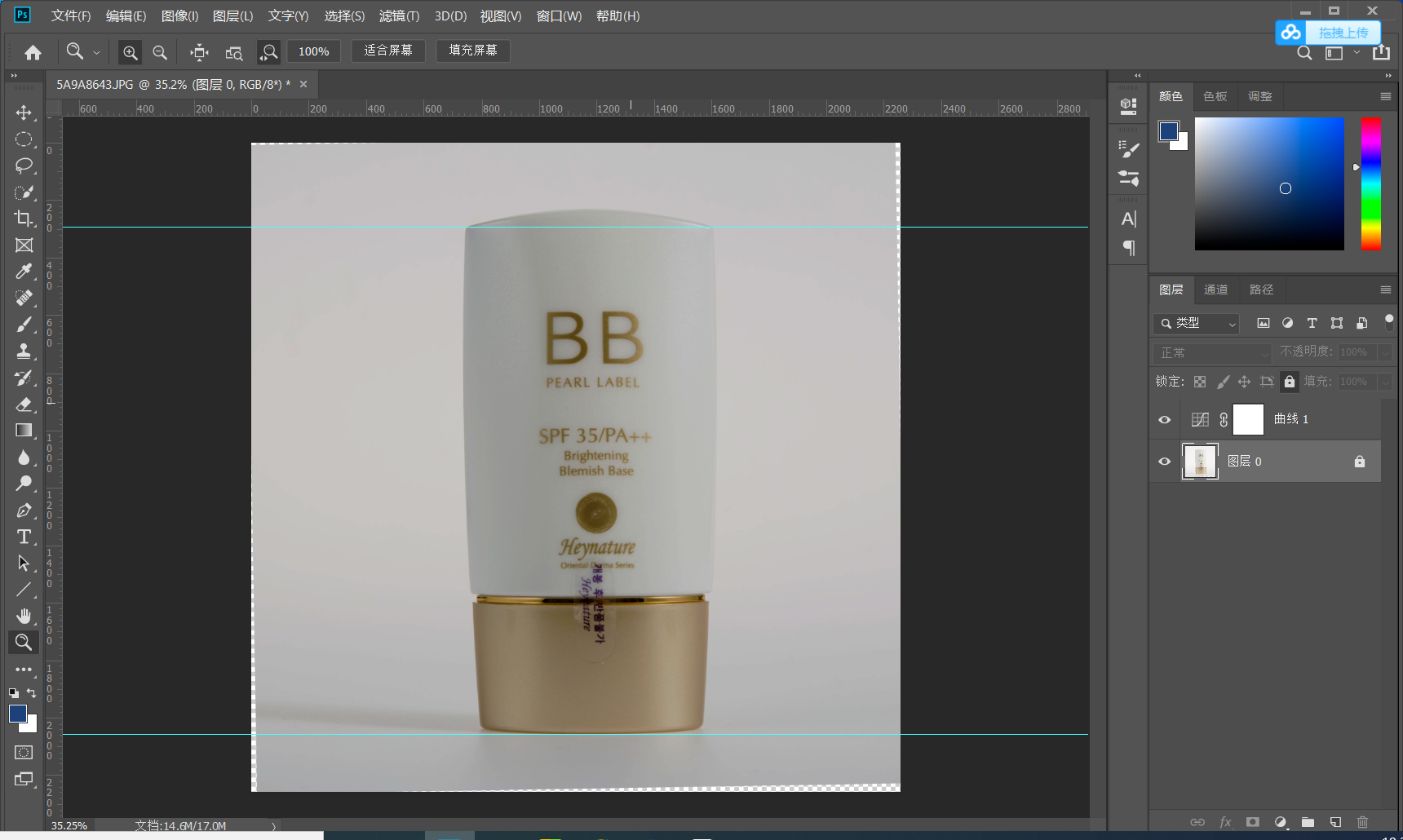 1.2建立参考线 打好参考线 确定产品的上下水平线 有的产品可能不是水平的可以通过自由变换调节 CTRL+T