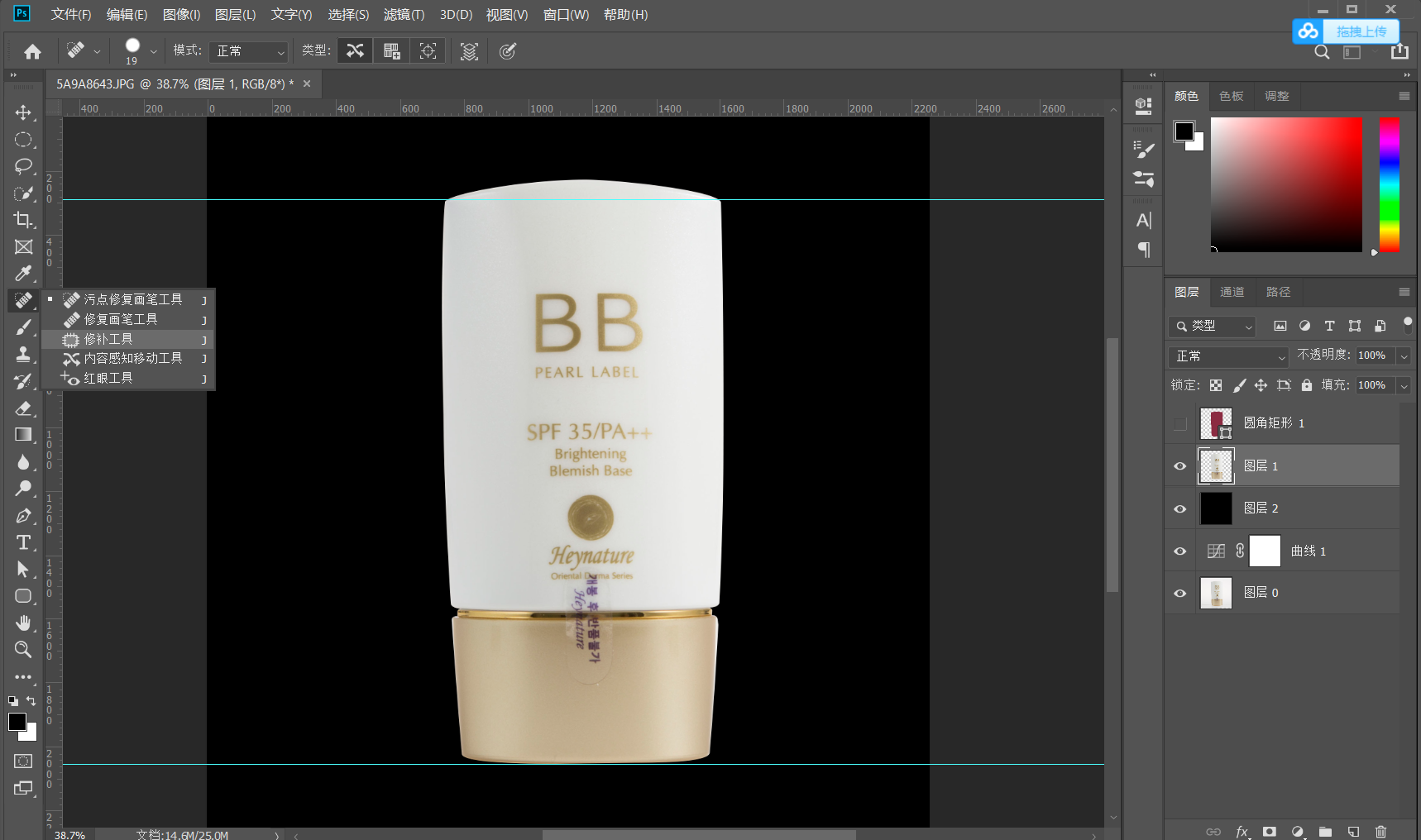 2.2 使用修补工具,这一步可以根据自身情况选择工具 修复工具组都可以