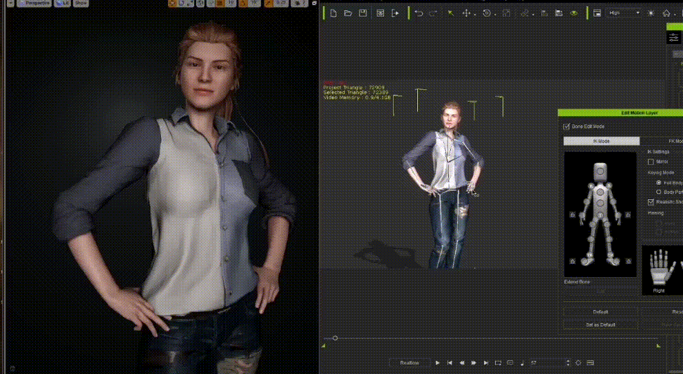 角色设置完成后制作动画 为了更直观的查看最终效果 我使用了UE4的LiveLink来实时查看动作在引擎中的效果