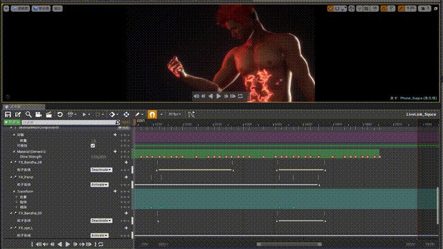 下一步就是装配角色蓝图了 联通LiveLink 添加粒子 设置触发条件