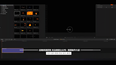 插件包含59个卡通能量爆炸水流火焰烟雾MG动画元素,直接在FCPX中使用,能够修改颜色和像素化。